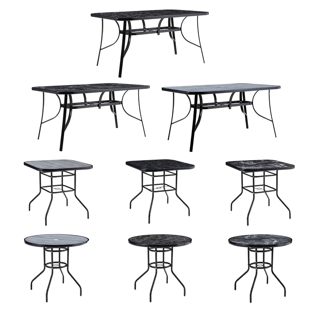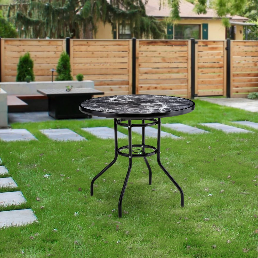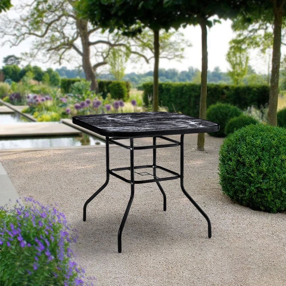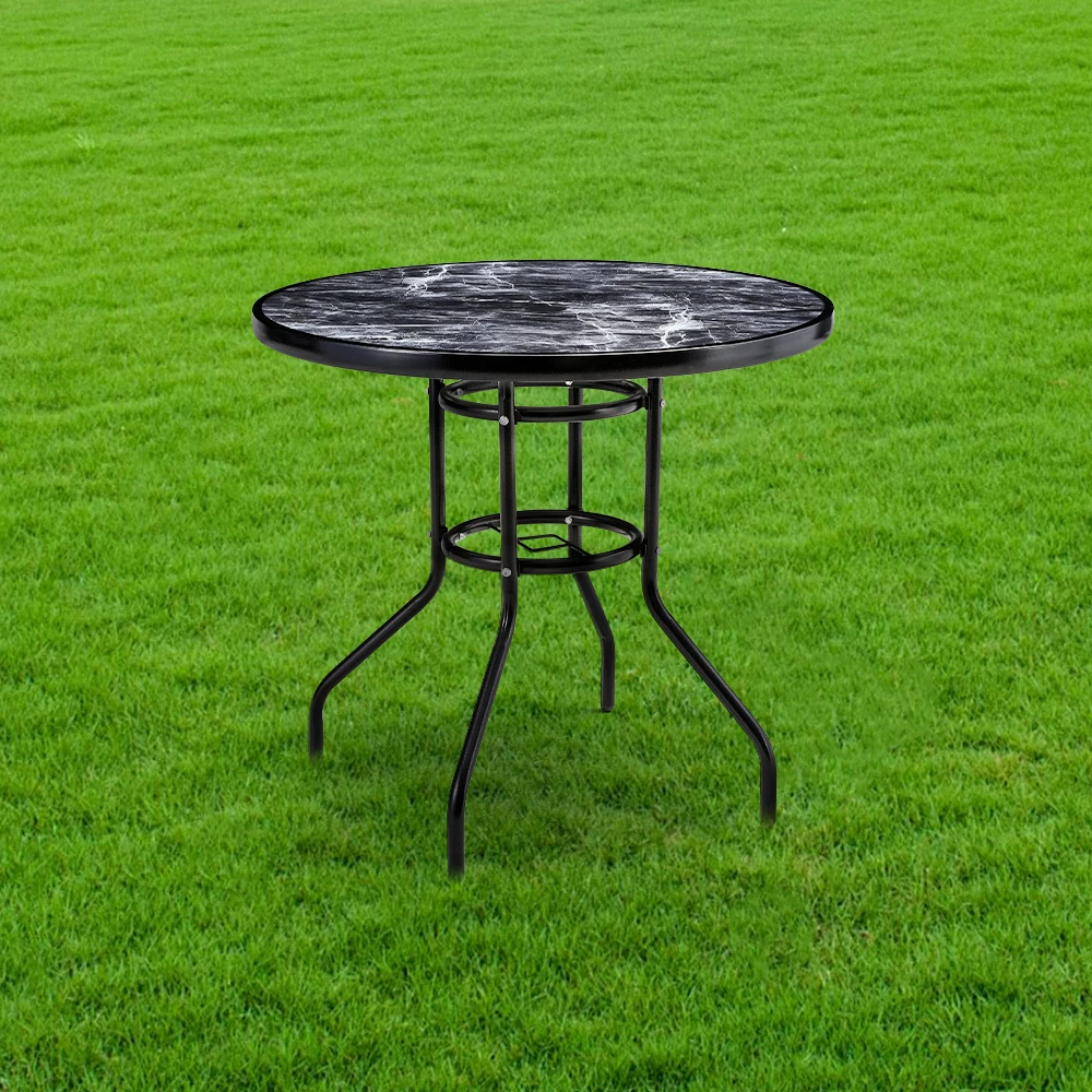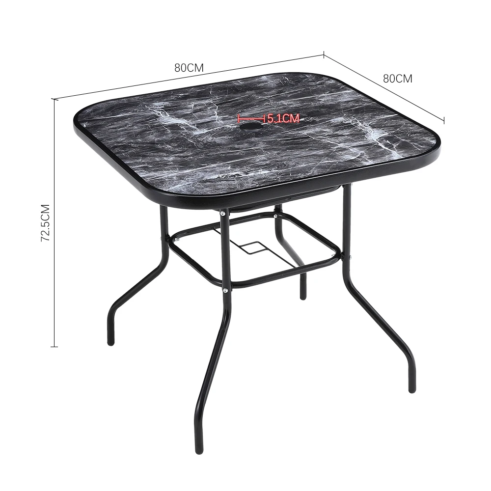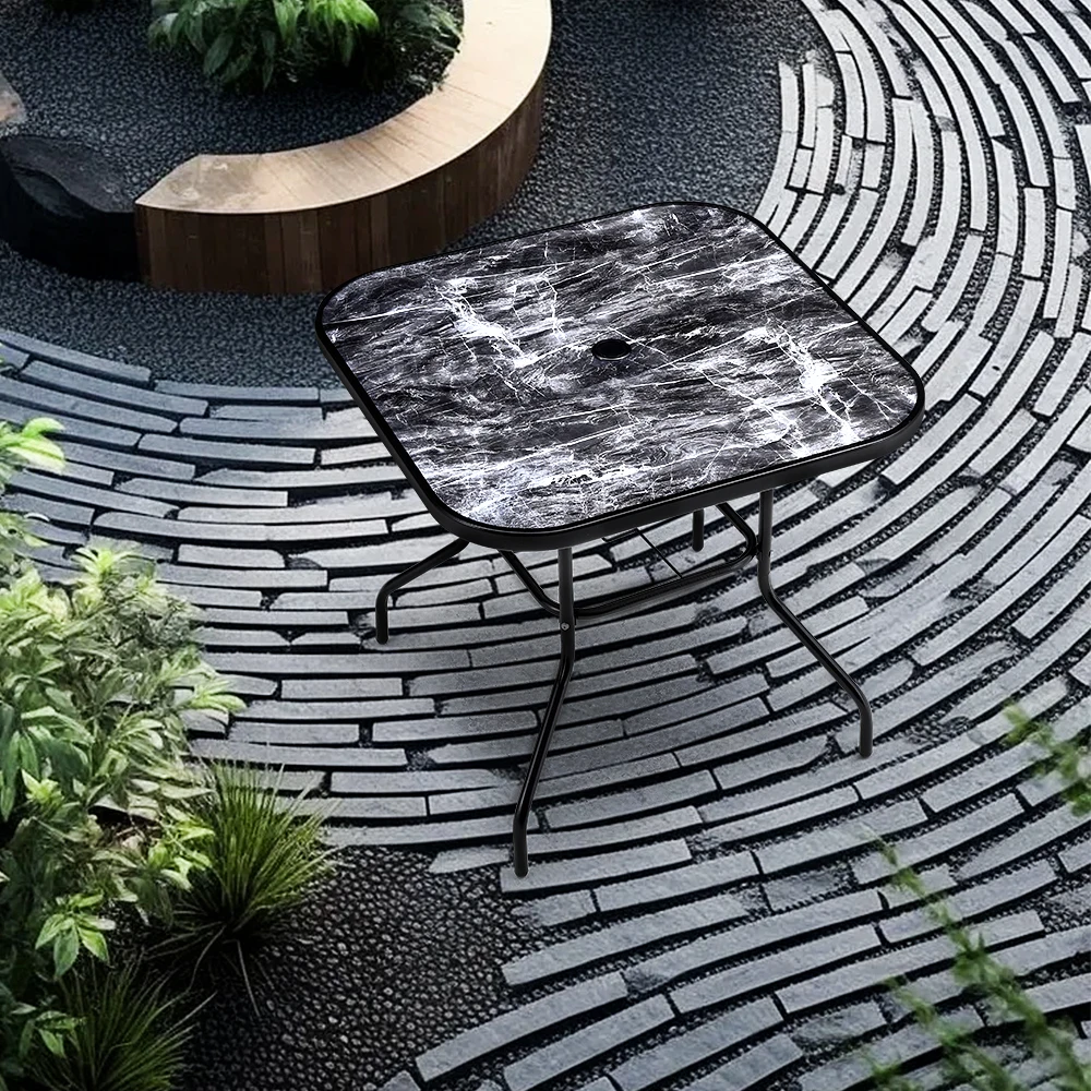 Spend a refreshing morning or evening alone at the Breeins marble coffee table chatting with friends. Crafted from heat-resistant and explosion-proof tempered glass, this table boasts a realistic marble texture for a smooth and natural appearance. Perfect for those who appreciate texture and style to minimalism, it adds a sophisticated touch to your space. The built-in parasol hole in the center provides protection from sun and wind, ensuring you can enjoy the outdoors without being disturbed by weather. Choose from various table sizes to suit your space.