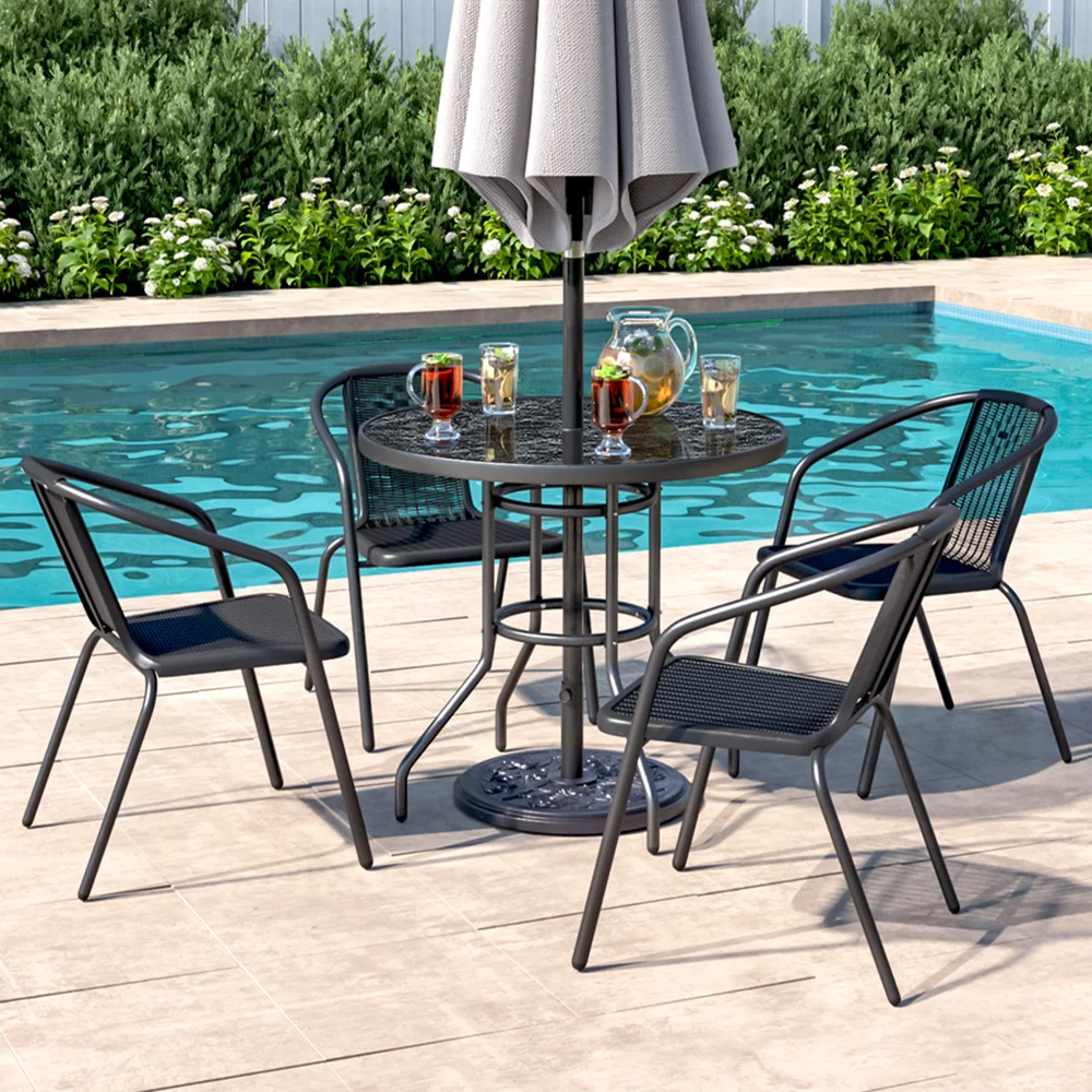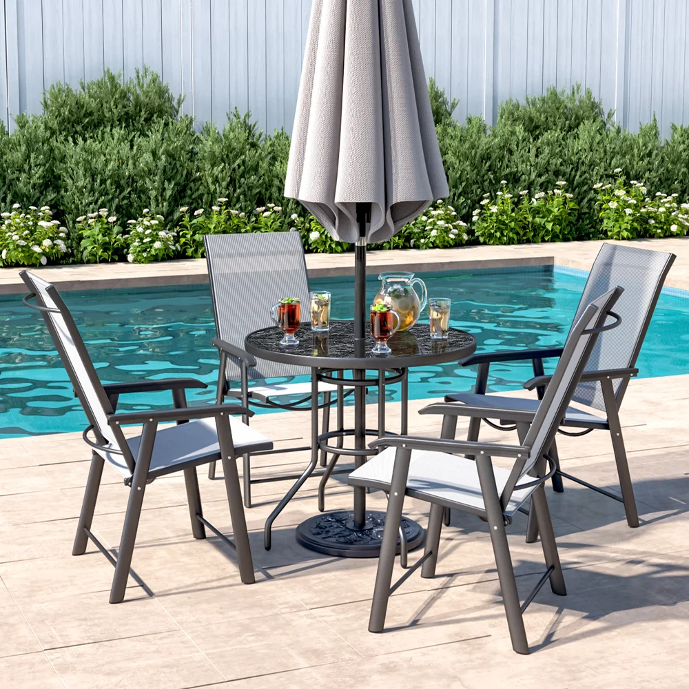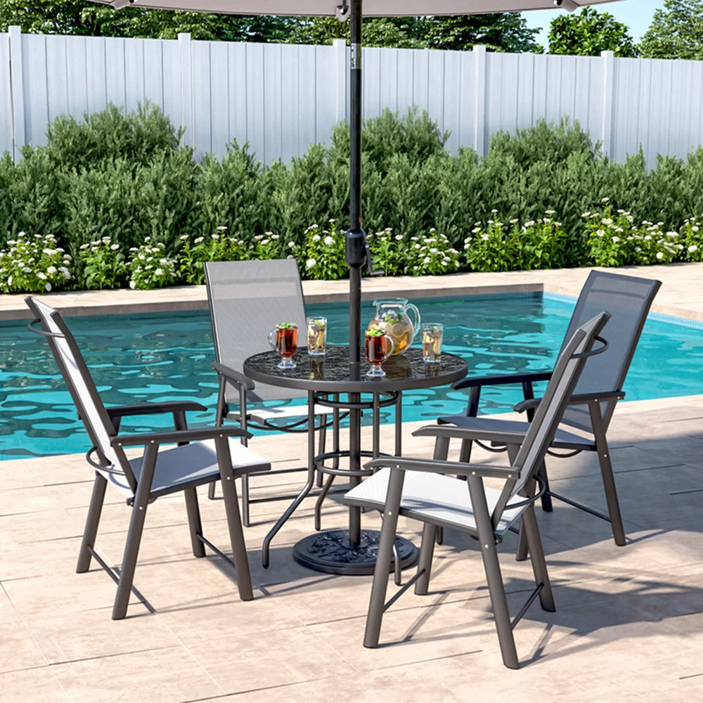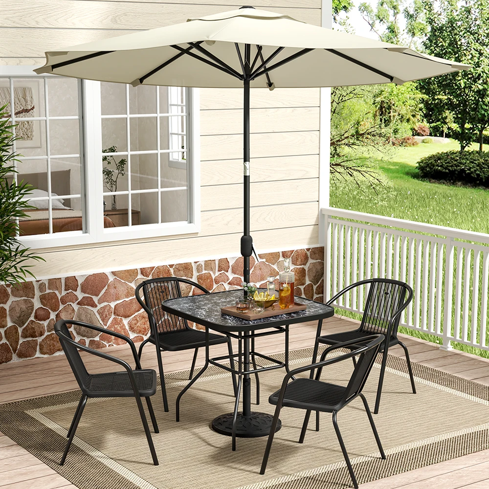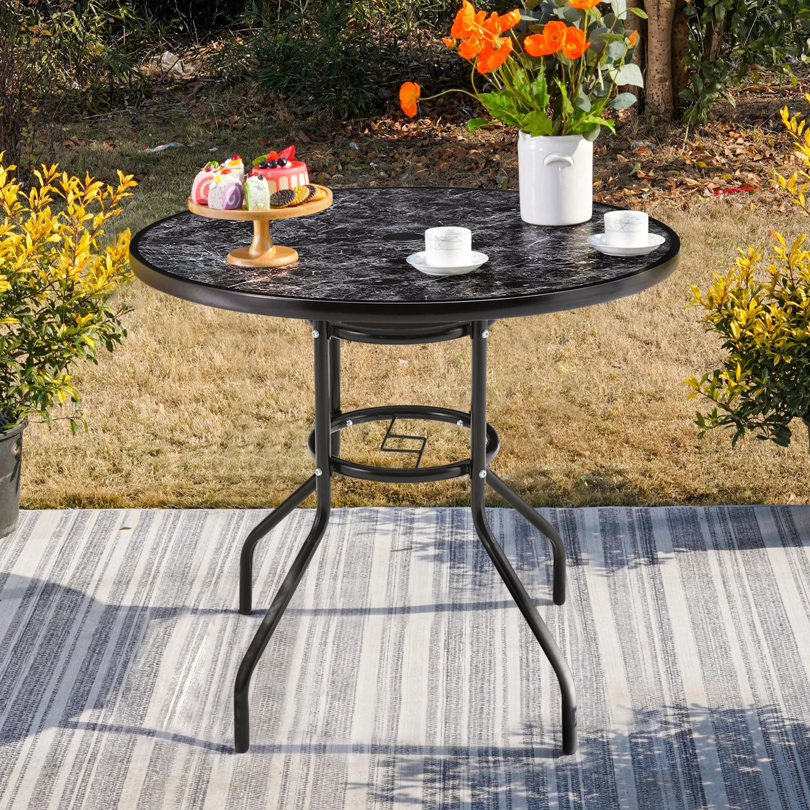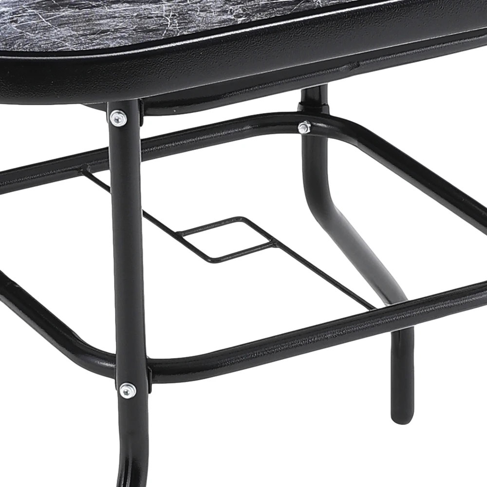Spend a refreshing morning or evening alone at the Breeins marble coffee table chatting with friends. Crafted from heat-resistant and explosion-proof tempered glass, this table boasts a realistic marble texture for a smooth and natural appearance. Perfect for those who appreciate texture and style to minimalism, it adds a sophisticated touch to your space. The built-in parasol hole in the center provides protection from sun and wind, ensuring you can enjoy the outdoors without being disturbed by weather. Choose from various table sizes to suit your space.
