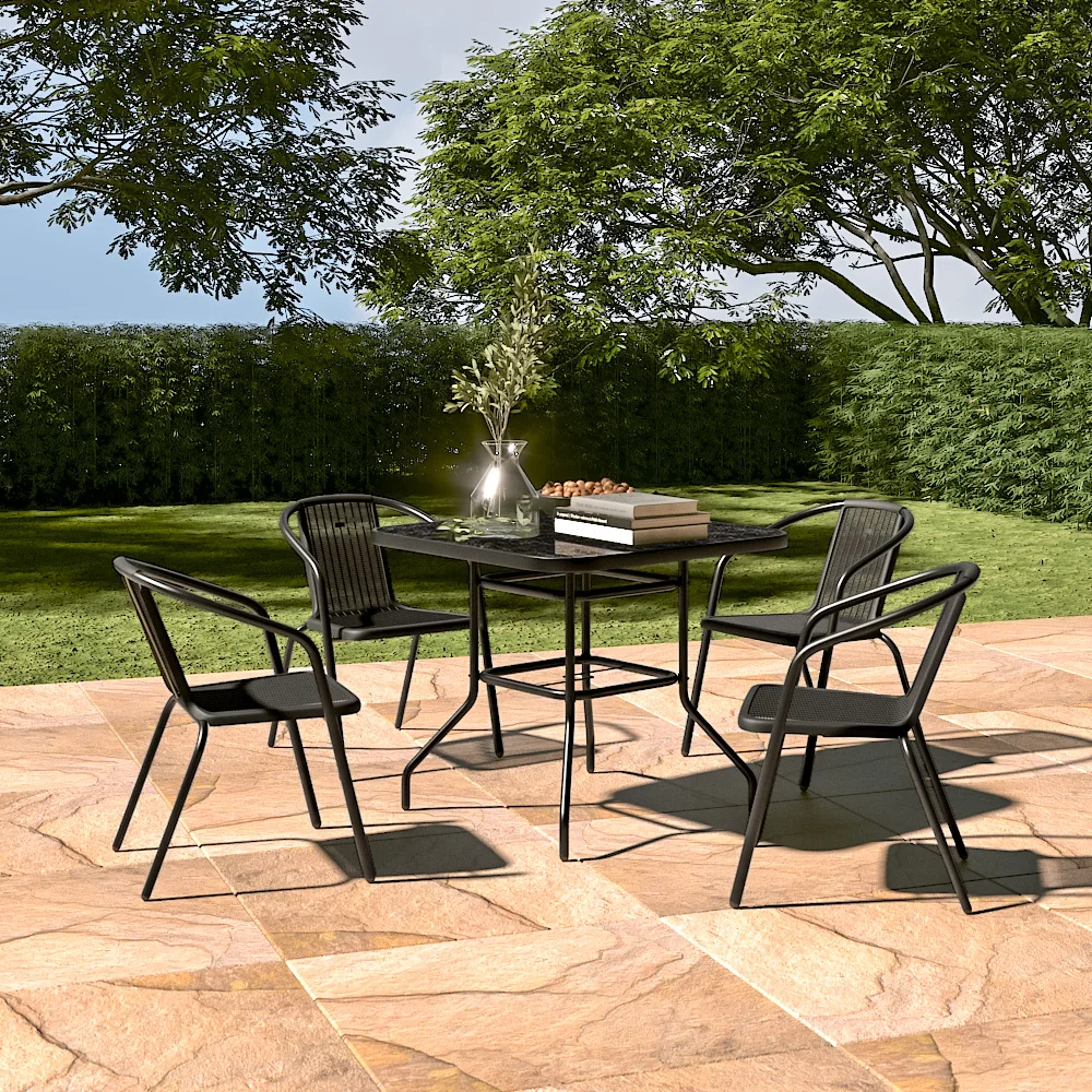 Tempered glass tabletop requires less maintenance and is easy to clean