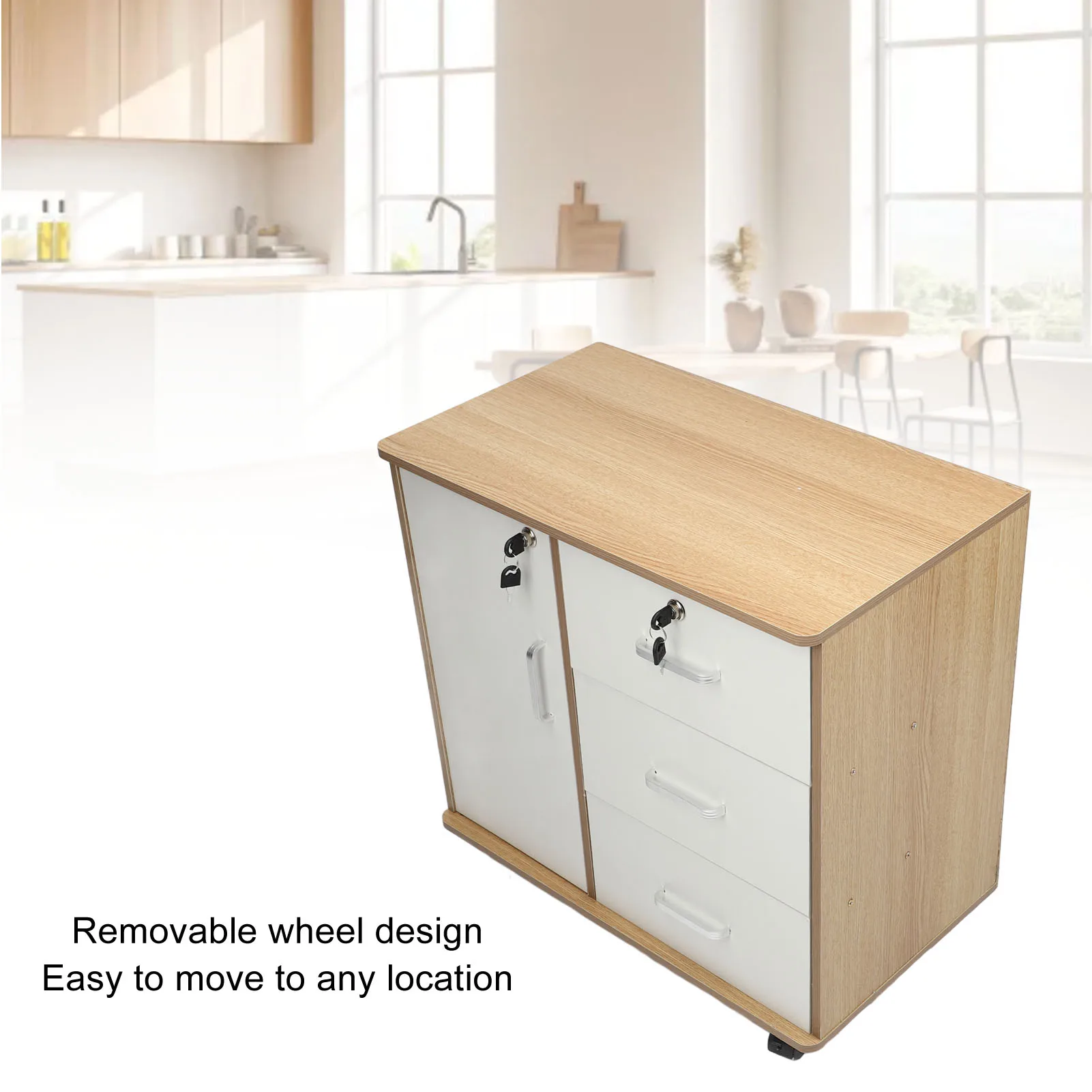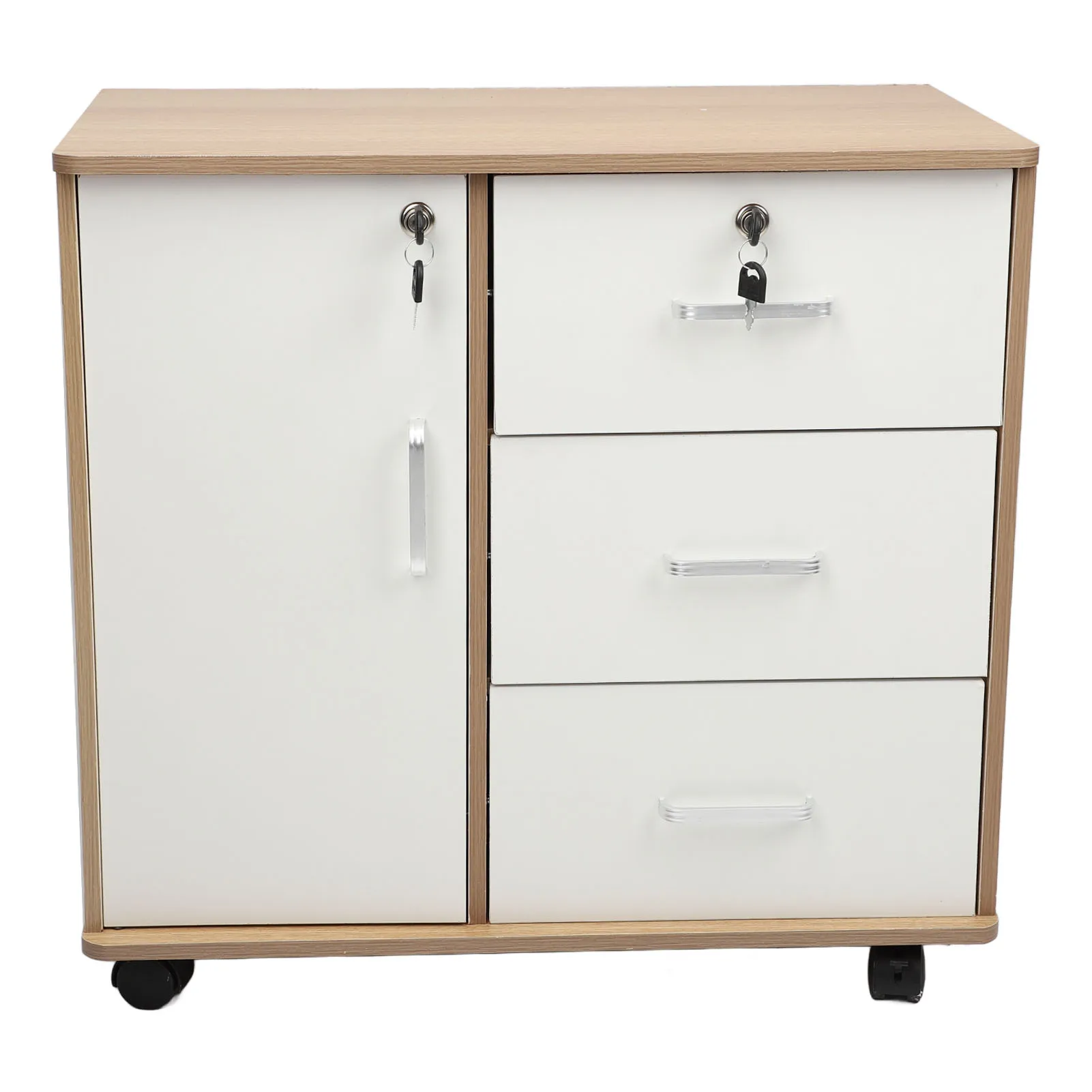 Bedside Storage Cabinet with Lock Removable Wheels Anti Theft Wood Bedroom End Table for File Document