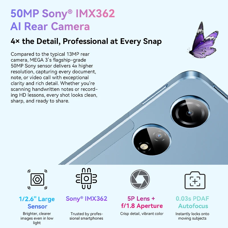 50MP SONY® IMX362 Camera & 2MP Depth Camera |