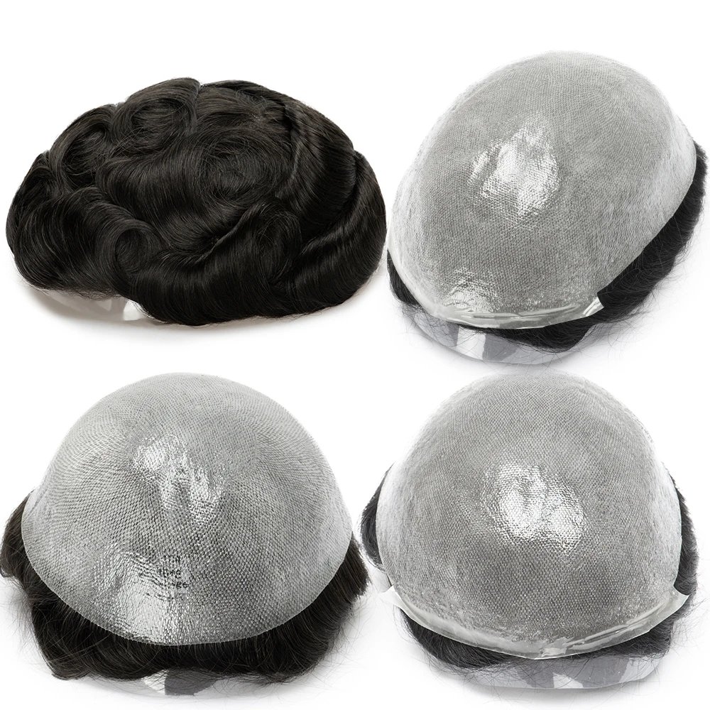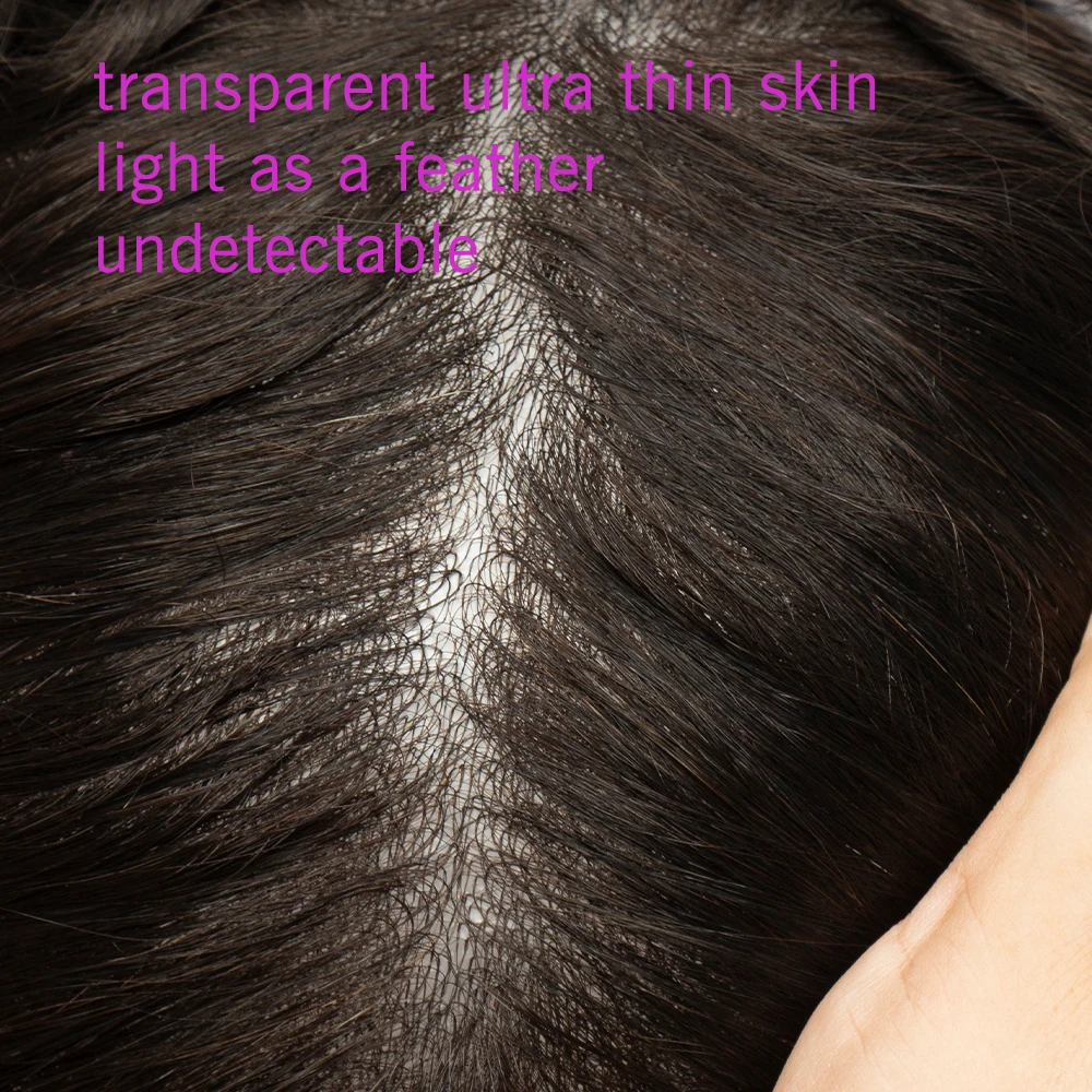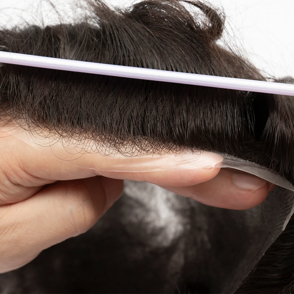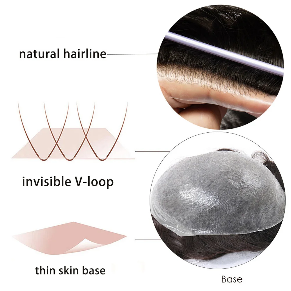 0.03mm Ultra Thin Skin Base Soft Silicone Invisible Handmade Men Replacement Hair System V-looped Hair Prosthesis Natural Human Hair Man Toupee PU Human Hair Hairpiece Male Wigs Recommend Men Toupee European Male Wig Thin Skin Base Hair Men Wigs