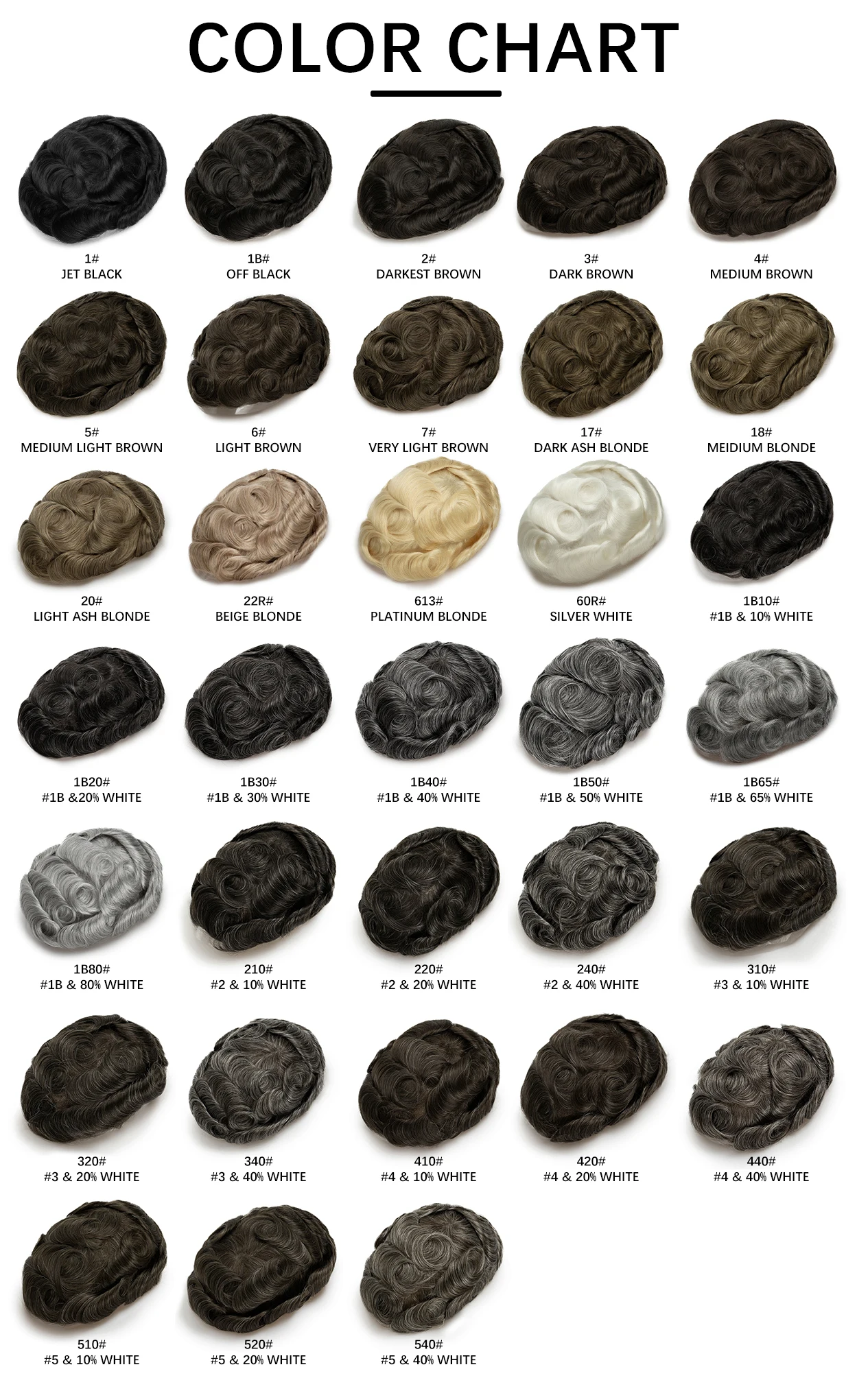 Toupee Swatch,if you don't know which color to choose, please leave message, we will help you