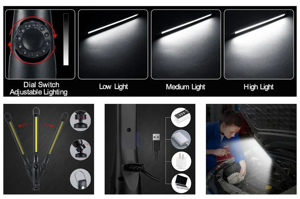 【Wide Application】COB LED work light is the most handy tool for home emergency lighting, car repair, camping, hiking and so on, one light to meet all your demands.