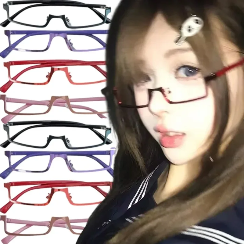Features: Retro decorative concave eyes, perfect for fashion lovers who like the Asia-Pacific Y2K style, its simple and atmospheric shape, versatile Japanese and Korean style, the half-frame design is perfect for girls who usually like cos and are more royal.