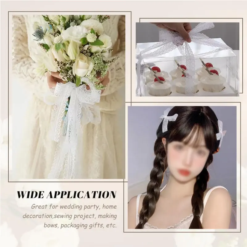 Versatile Usage: Perfect for gift wrapping, floral arrangements, sewing, bridal and wedding decorations, as well as birthday party decor, this 1/5/10yard roll of lace ribbon offers endless creative possibilities.