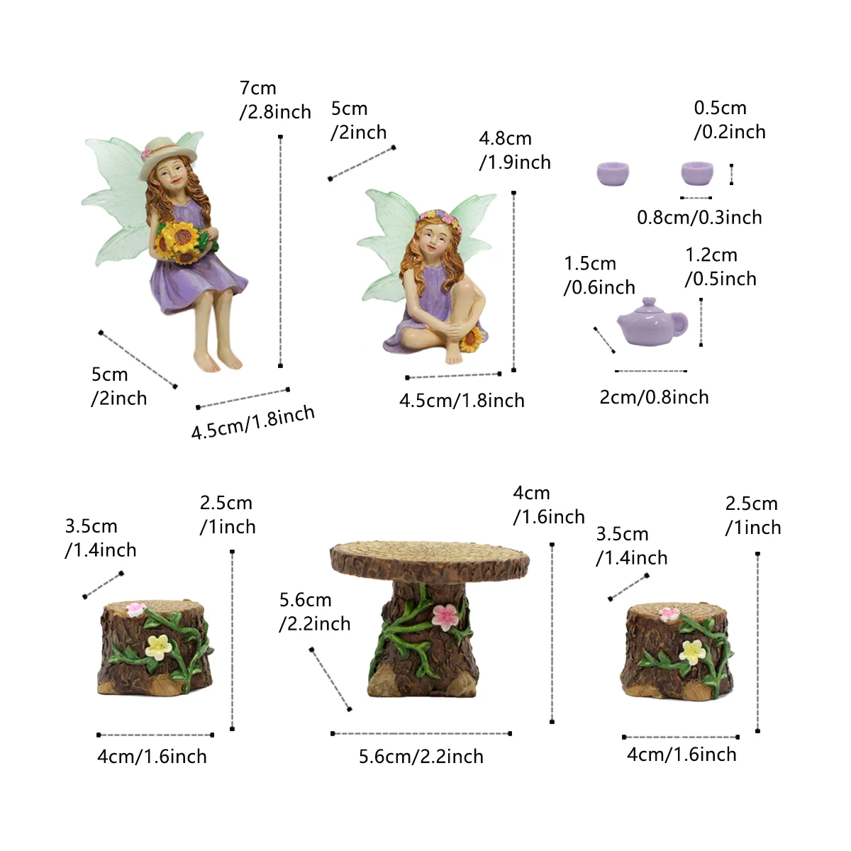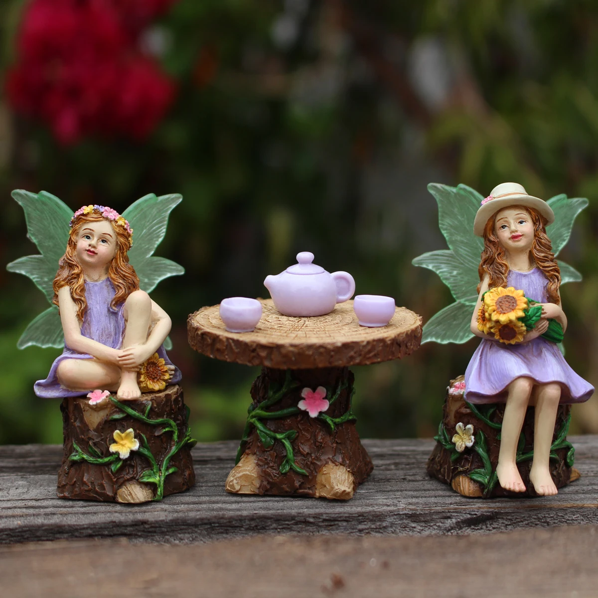 1 Set Summer Tea Party Vacation Flower Fairy, Interesting Scene Simulation Micro Landscape Decoration Statue, Outdoor Fairy Gard