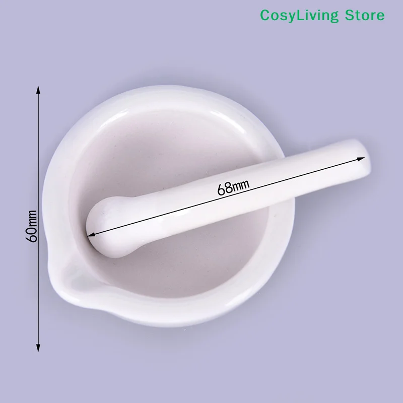 Volume: size 60mm Outside Diameter: Approx. 2.3 inch Inner Diameter: 1.8 inch Depth: Approx. 0.7 inch Pestle Length: Approx. 2.6 inch long, 0.4 inch diameter (smaller end), 0.8 inch diameter (larger end) Volume: 6ml Material: Porcelain Color: White