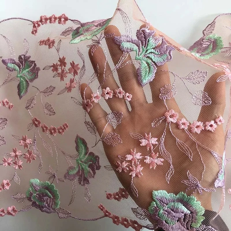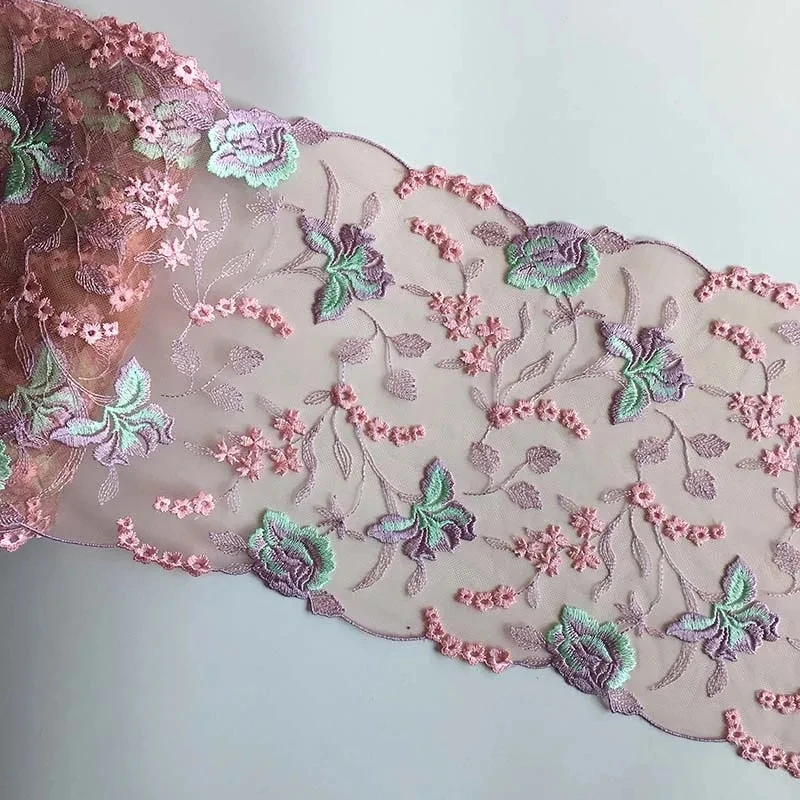 1 Yards Pink Embroidered Fabric Lace Trim Ribbon Handmade DIY Sewing Craft For Costume Hat Decoration Lace Fabric