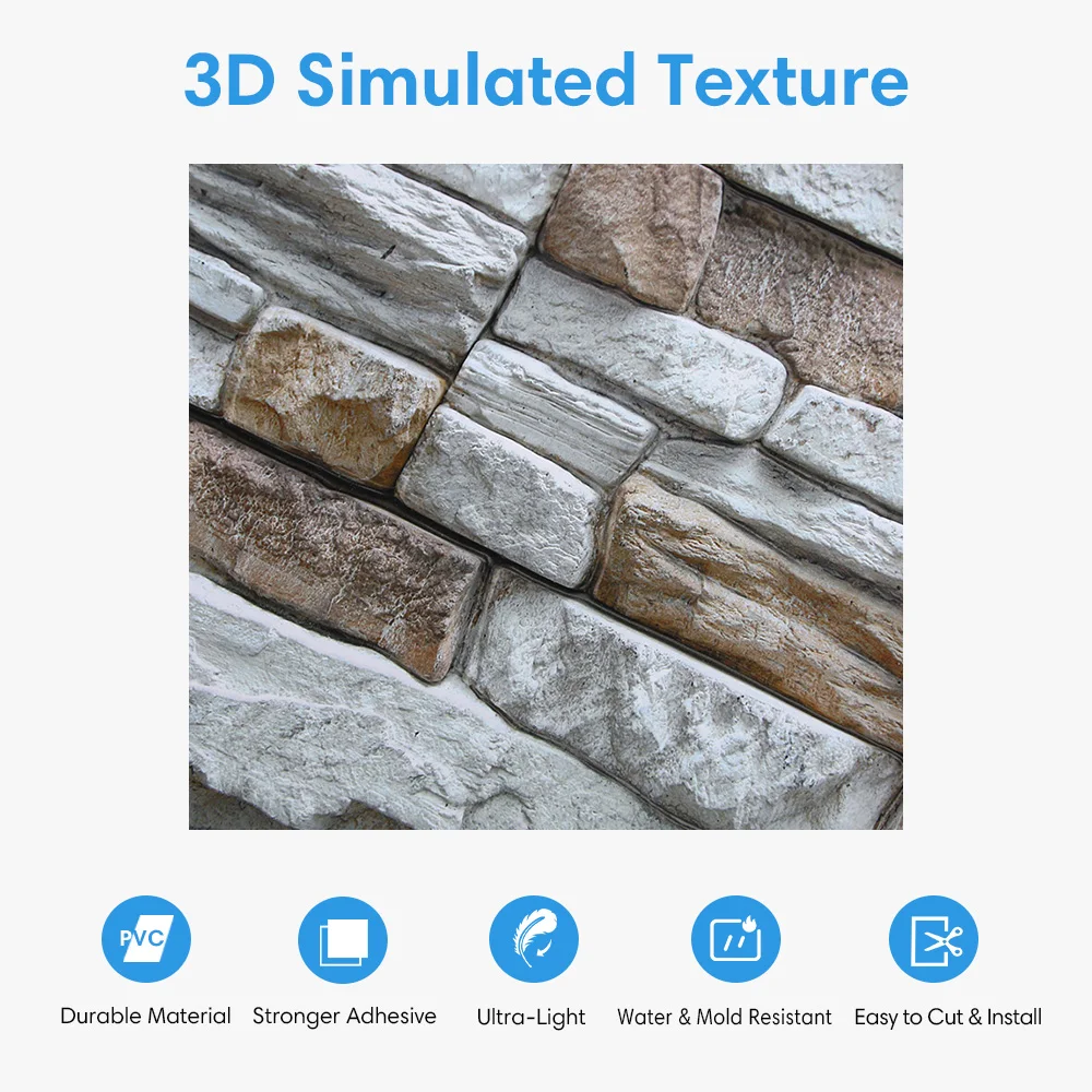 【Lifelike 3D Stone Textures】: Our wall panels feature realistic, touchable stone textures that beautifully mimic real stonework—without the hassle of traditional stone!