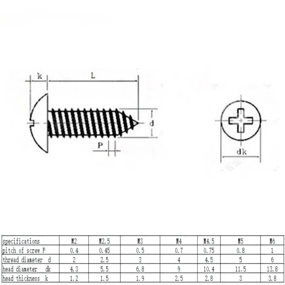 Specification: composed of d * L(Thread diameter * Thread length) excluding head thickness