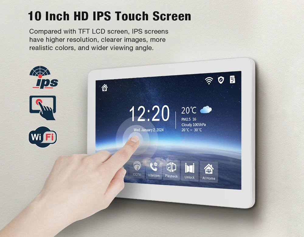 Note: Compared to the old system, it has three main advantages: 1. It is more powerful and has a true 1080P resolution high-definition display screen. It can be extended to connect two locks, three extension displays, and two cameras. Full touch operation interface. It is displayed in nearly 20 different languages, including Ukrainian, Spanish, and more. 2. A more suitable price. The new product adopts a completely new solution, with a 10 inch large screen priced at only 7 inches. 3. Optimized the way to add mobile applications, just like connecting to WIFI on a phone.