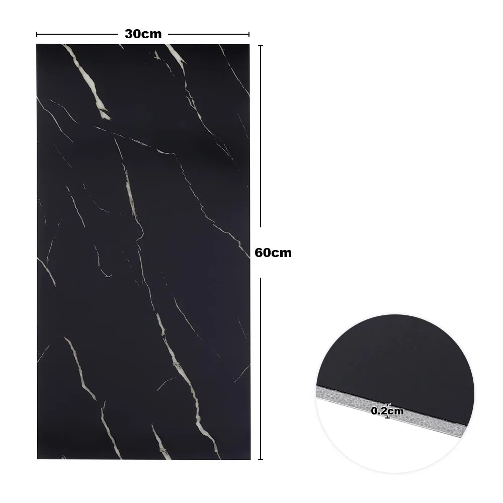 Modern marble pattern complements most home decor. Thickened PVC ensures the tiles stay in place for a long time. Easy peel-and-stick installation on flat surfaces.