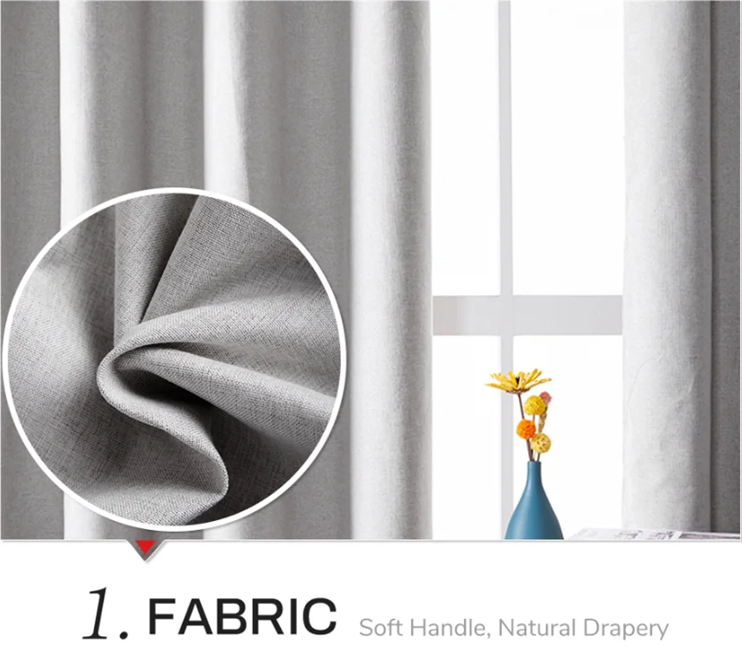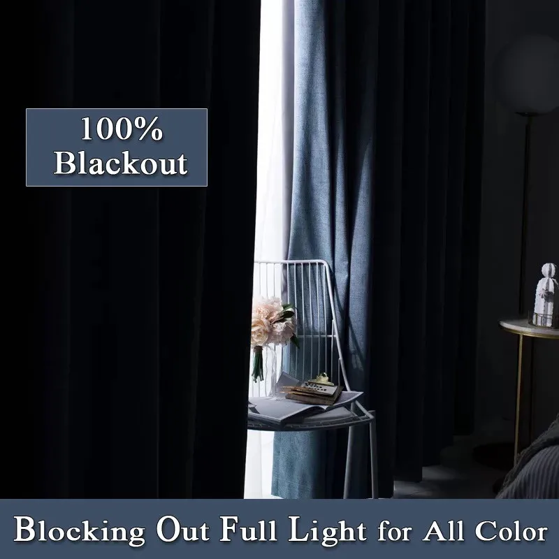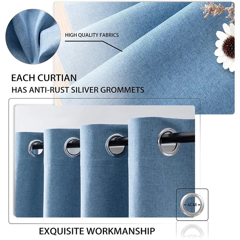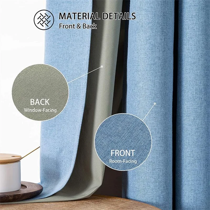 4. Premium Material: Triple weave treatment design with top and back layer of soft faux linen fabric and middle layer of blackout material makes the curtain can reach 100% blackout effect.
