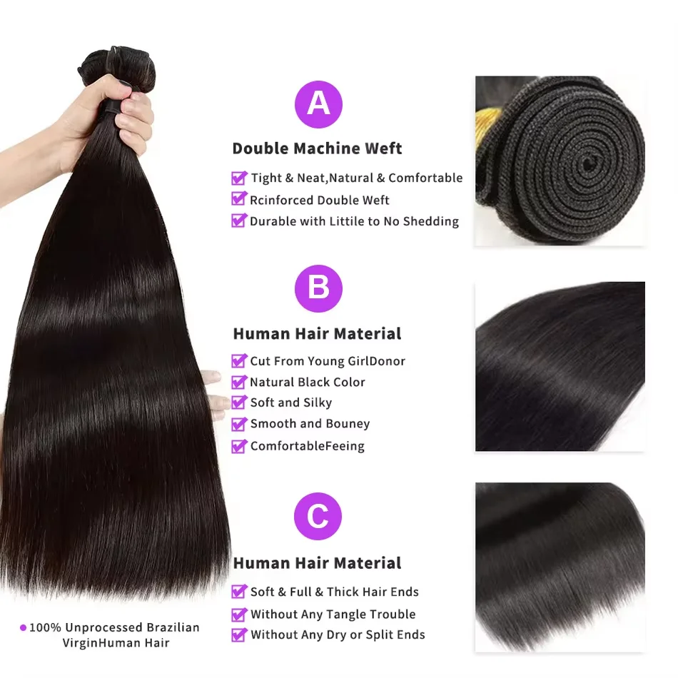 These straight bundles of 100% unprocessed brazilian human hair are amazing! 💁 ♀ The natural black color is perfect. The hair is soft, silky, and easy to style. Worth every penny! 💸