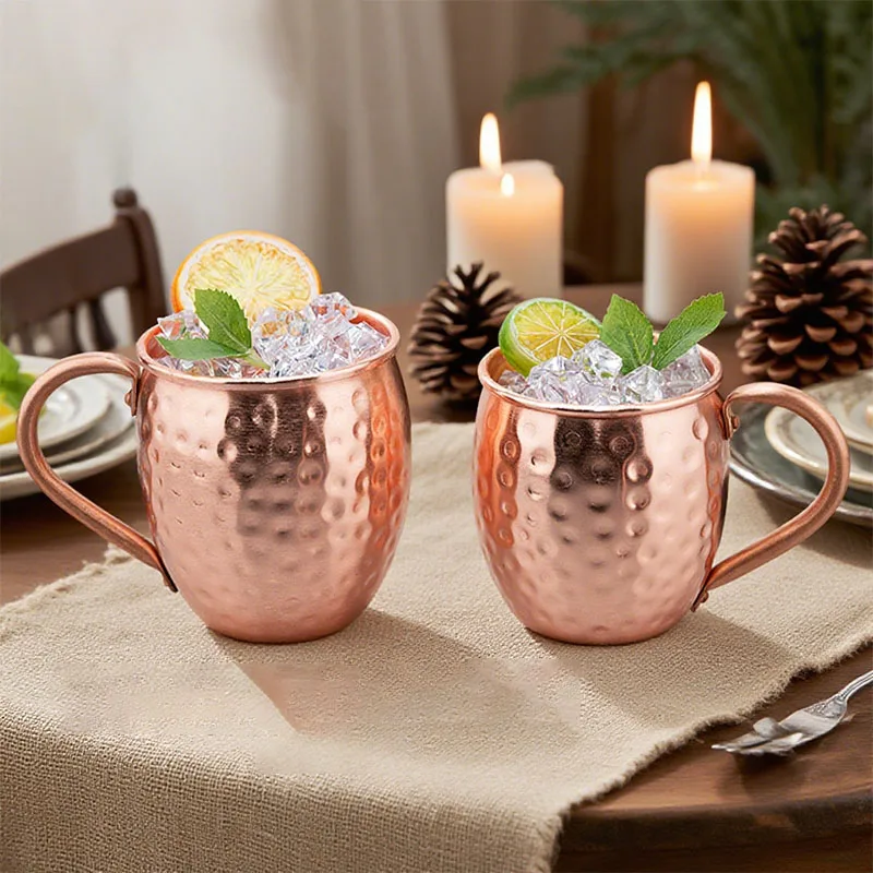YOUR BEST CHOICE: Perfect for enhancing the flavor and keeping all your favorite drinks cold and refreshing, be it a russian moscow mule, whiskey, vodka, rum, margarita, tequila mixed drink, stinger, beer, infused water, iced coffee, iced tea and many more. Constructed of 100% solid pure copper, it has no stainless steel or nickel lining, which ensures it is contamination-free. These are not imitation copper plated mugs, nor are they lined with tin, nickel, steel, or food lacquer inner coatings.
