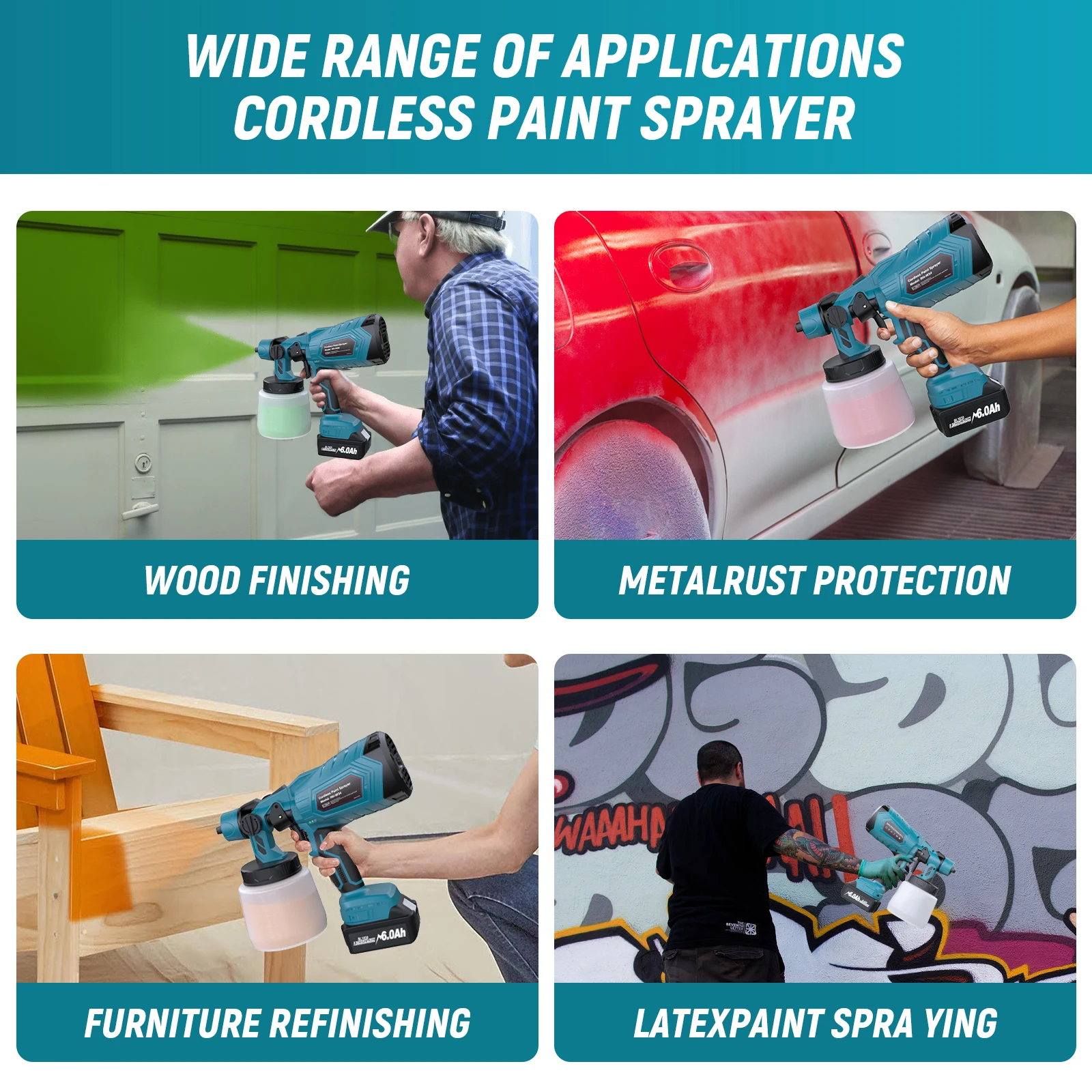 ● Free to regulate the paint output by adjusting the flow control knob on the sprayer.