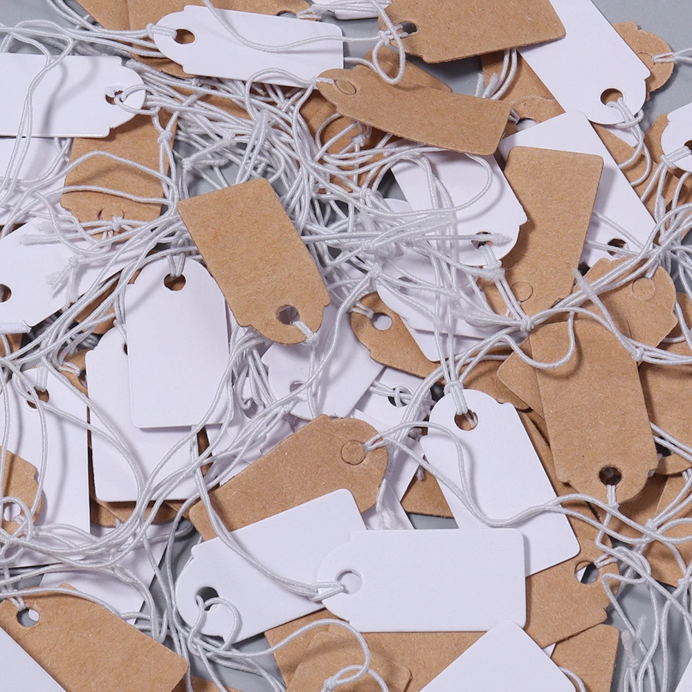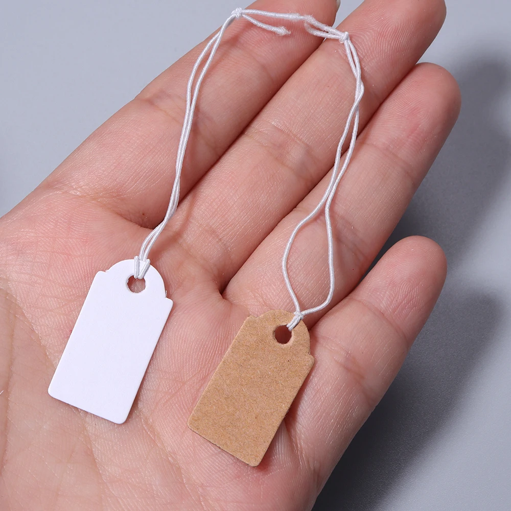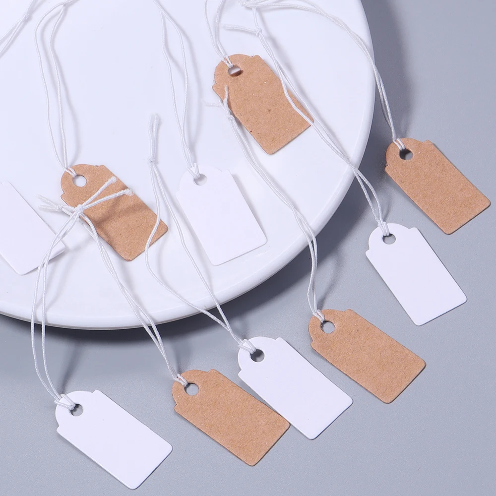 100pcs/Lot Rectangular Paper Price Tag White Kraft Blank String Watch Jewelry Crafts Price Display Cards Package Hang Tag Card