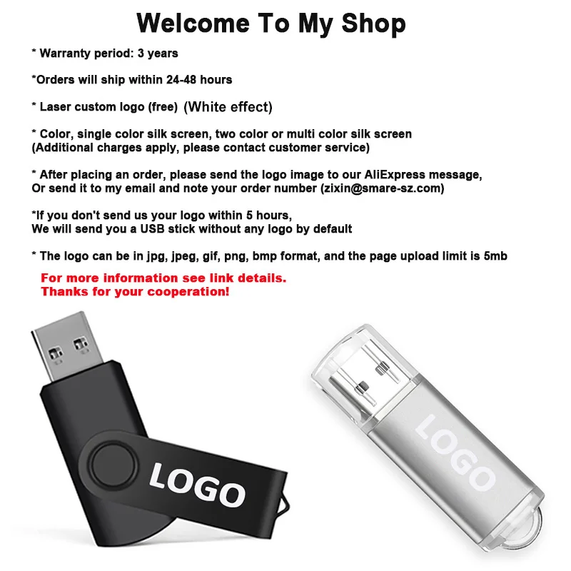 * If you don't send us a logo within 5 hours, we will send you a usb flash drive without any logo by default