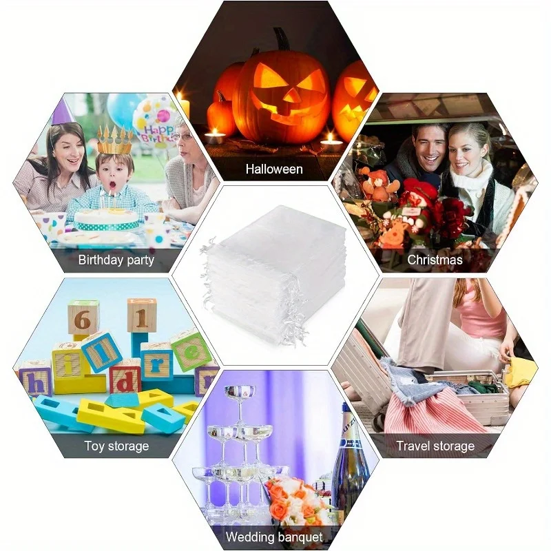 2. Please be very careful when choosing the Organza Bag Size. The photos are for illustration purposes only.