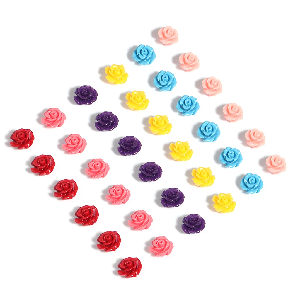 10Pcs 6-15mm Resin Rose Camellia Flower Flatback Beads Loose Spacer Beads Ornaments Charms Embellishments For Phone Decorations