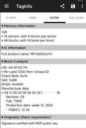 - UID: 4 bytes, Block 0 not writable
