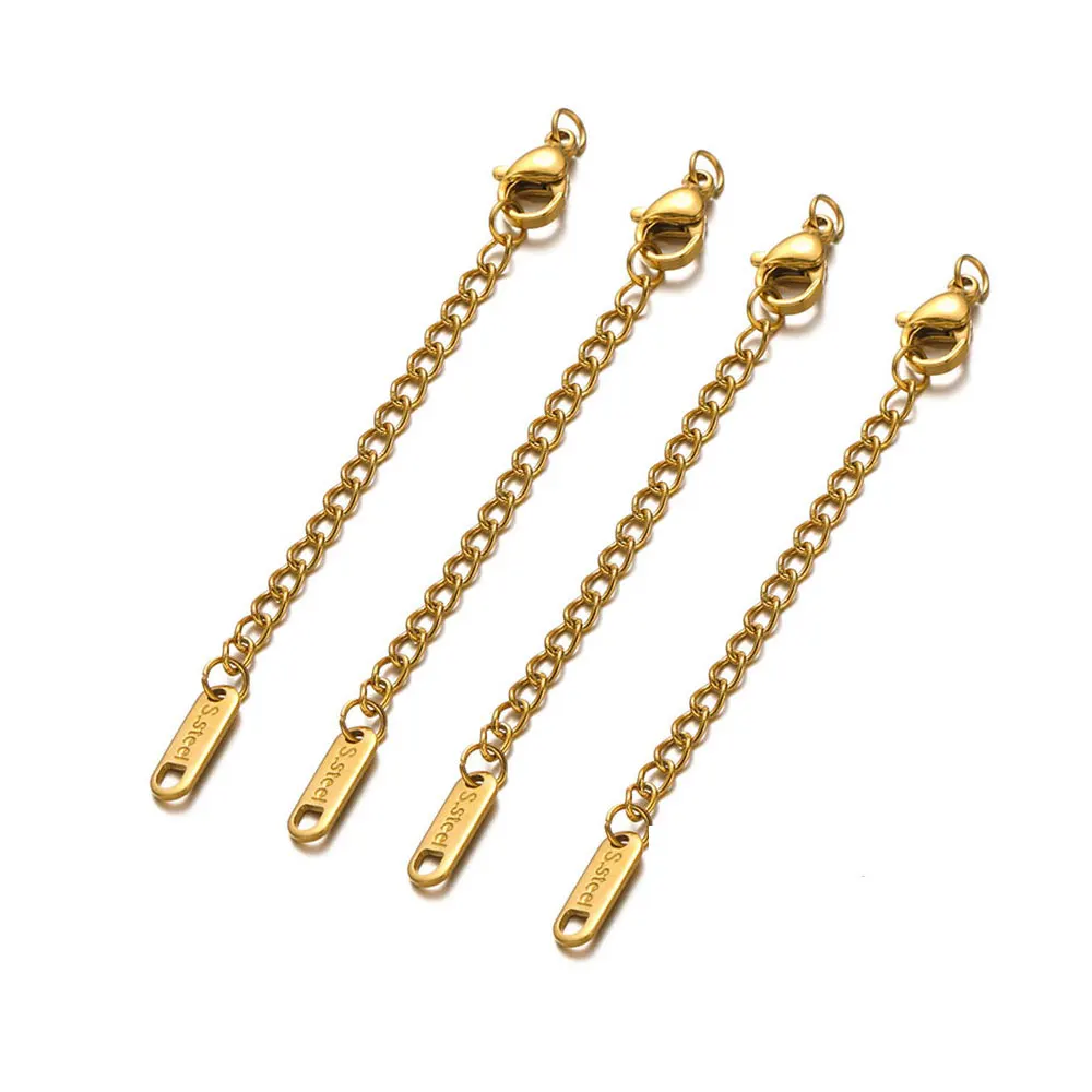 10pcs Stainless Steel Extension Chains with Lobster Clasps Connector Link Necklace Tail Making DIY Bracelet Accessories Supplies