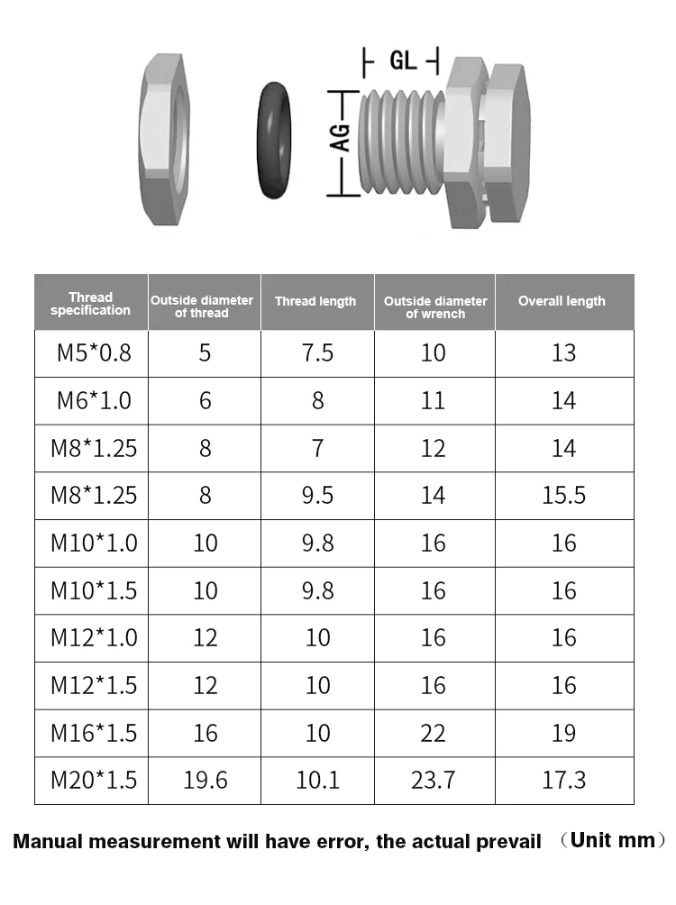 M6*0.75 M8*1.0 M12*1.25 G1/4