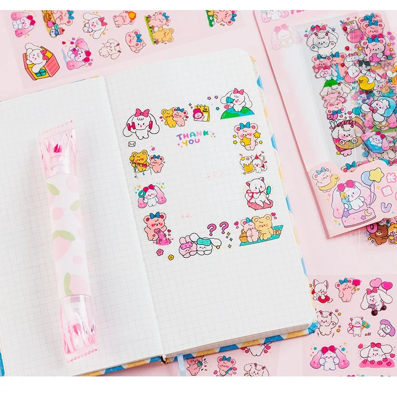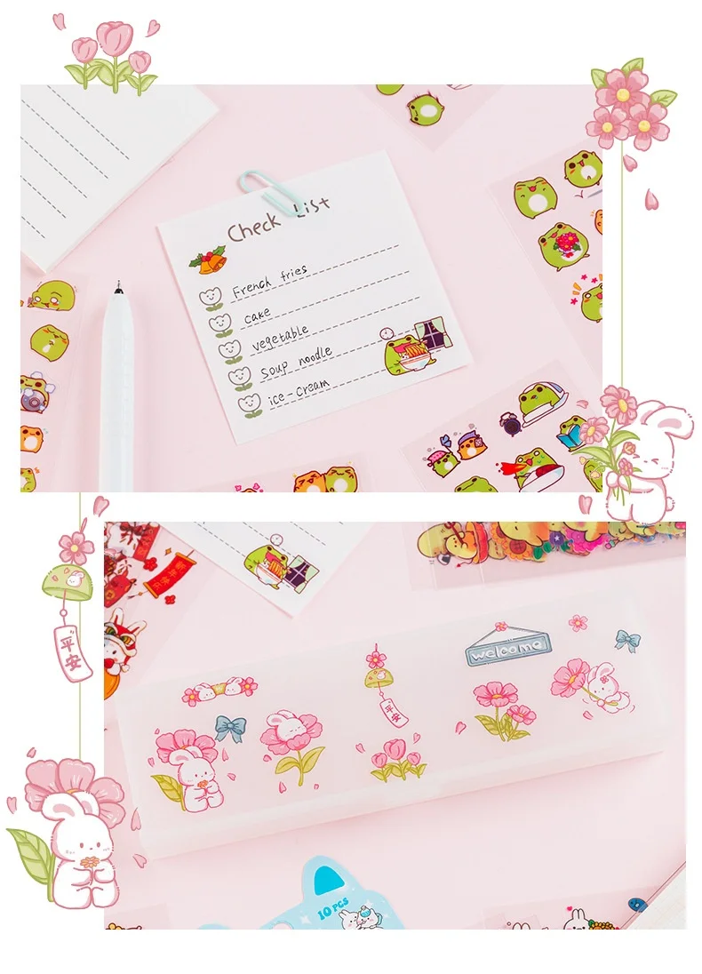 I love these transparant little anime so cute frog stickers. I used them on boxes and stationery things and they look wonderful. They are really awesome! I even bought these for the fourth time! Super great! They make me happy!