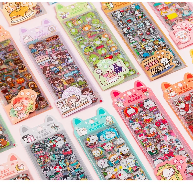 These stickers are so cute! Big variety (10 sheets, all different) and excellent quality. Clear plastic stickers.