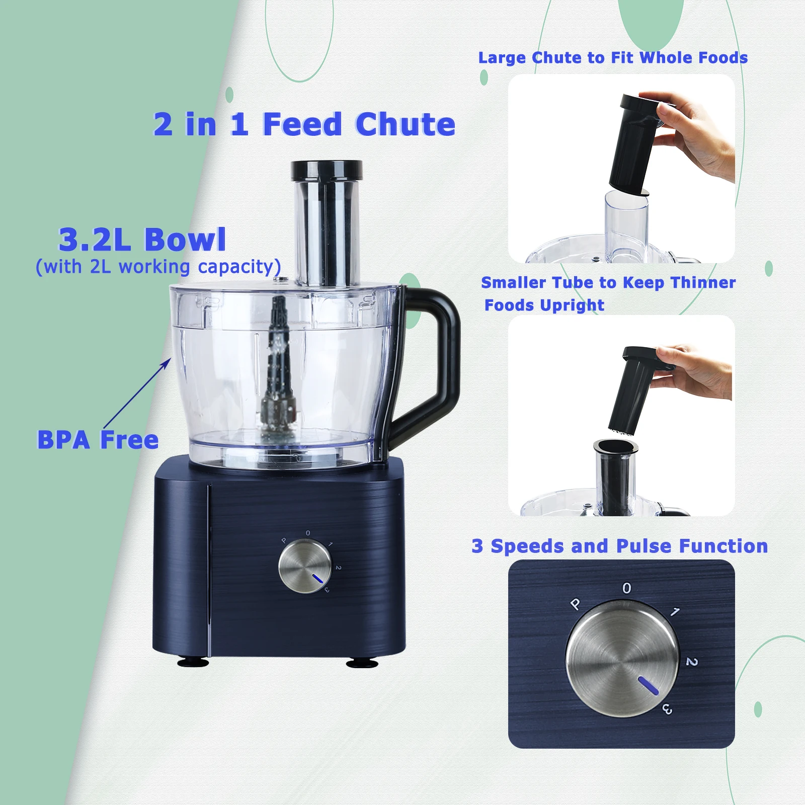 - Special Features: Large Capacity,Adjustable 3 Speeds Plus Pulse,Easy to Clean,11 in 1 Multifunctional Food Processor,1100W Powerful Motor