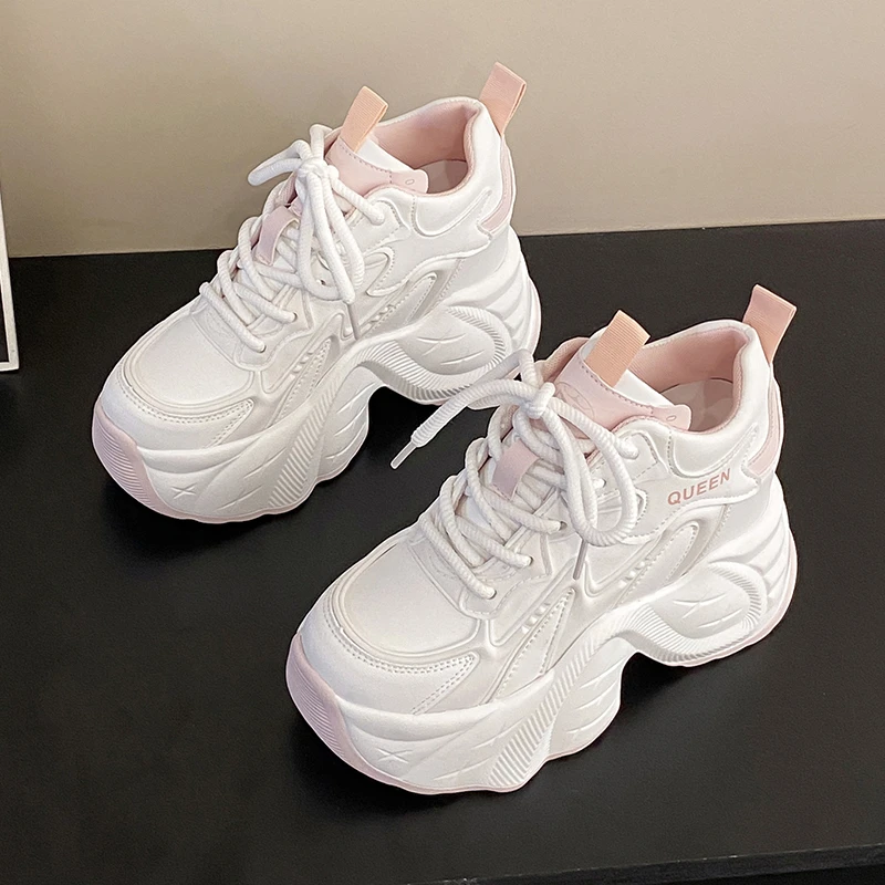 11CM Hidden Heels Chunky Sneakers Women Breathable Lace Up High Platform Shoes Woman 2024 Autumn Non-Slip Thick Bottom Sneakers