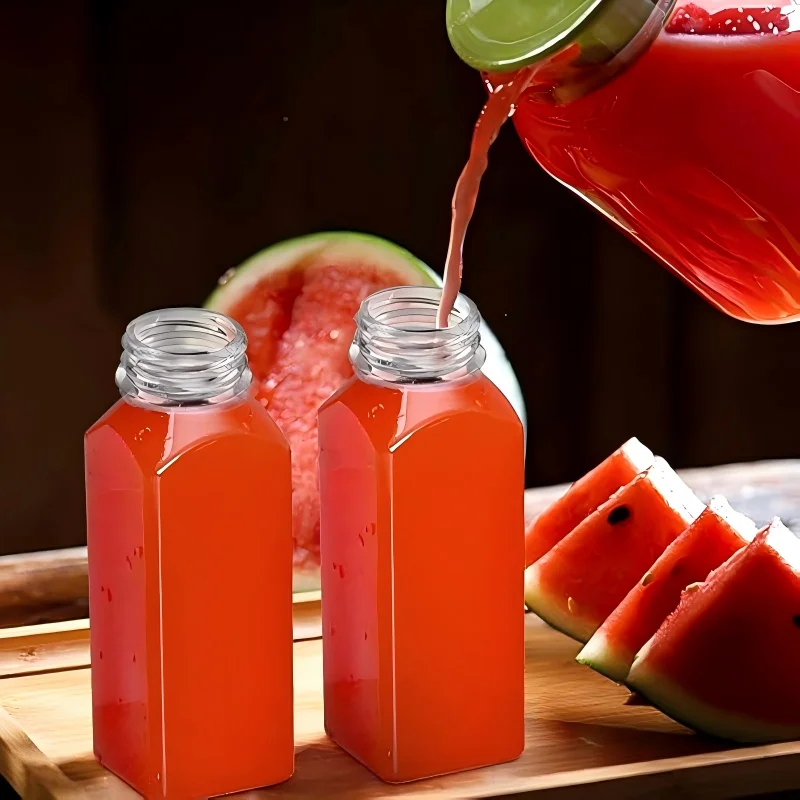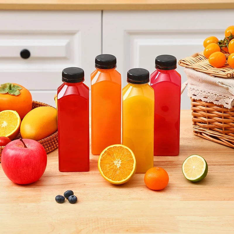 Plastic juice bottles with lids make your drinks safer. The tamper proof cover forms an airtight and leak proof seal to maintain freshness. You can put them in your backpack, refrigerator, car, or store them without worrying about getting dirty. Food grade materials can make plastic bottles with lids healthy and environmentally friendly, and they can be recycled.