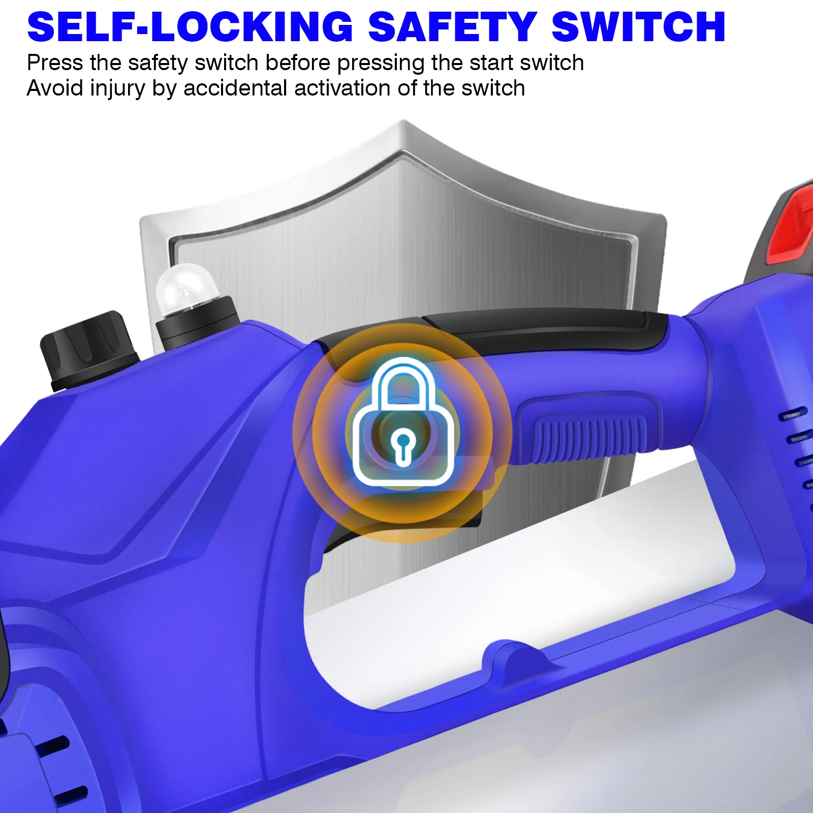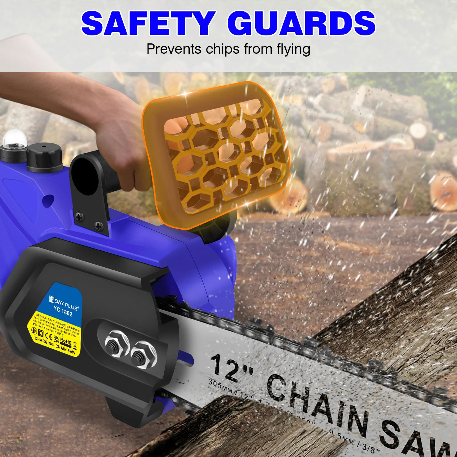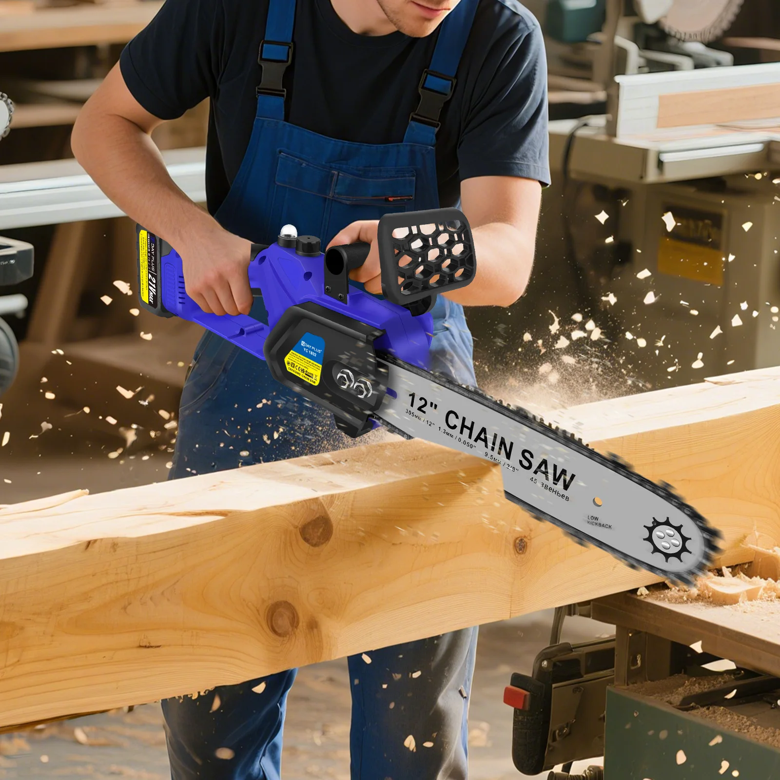 Our electric chainsaw employs a high-power brushless motor design for rapid timber cutting. It features a robust guard to ensure safe cutting and prevent flying debris or chain contact with hands.