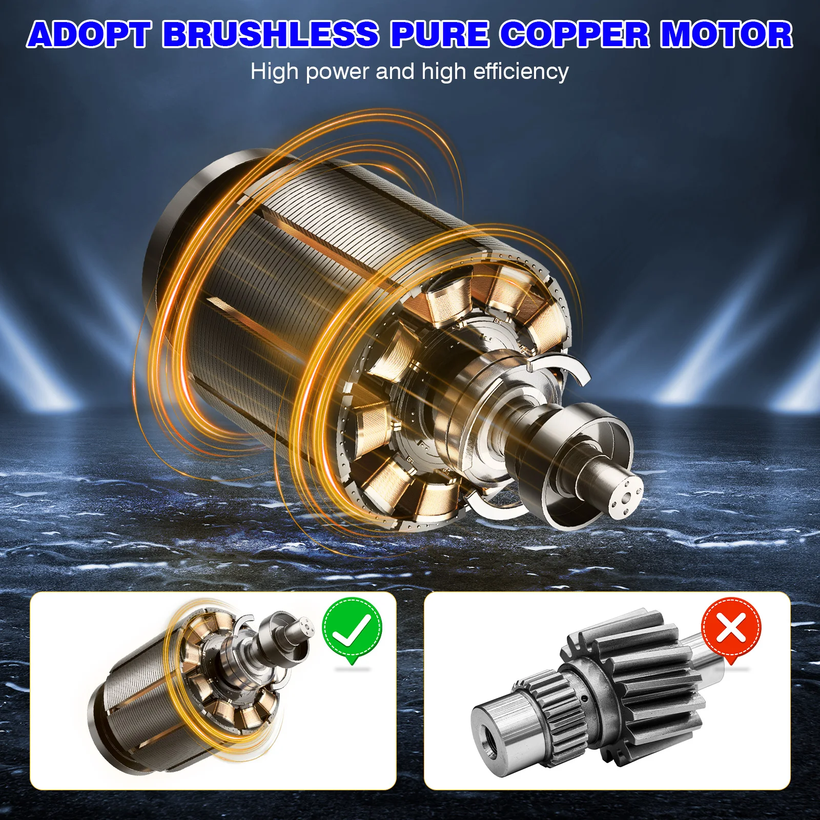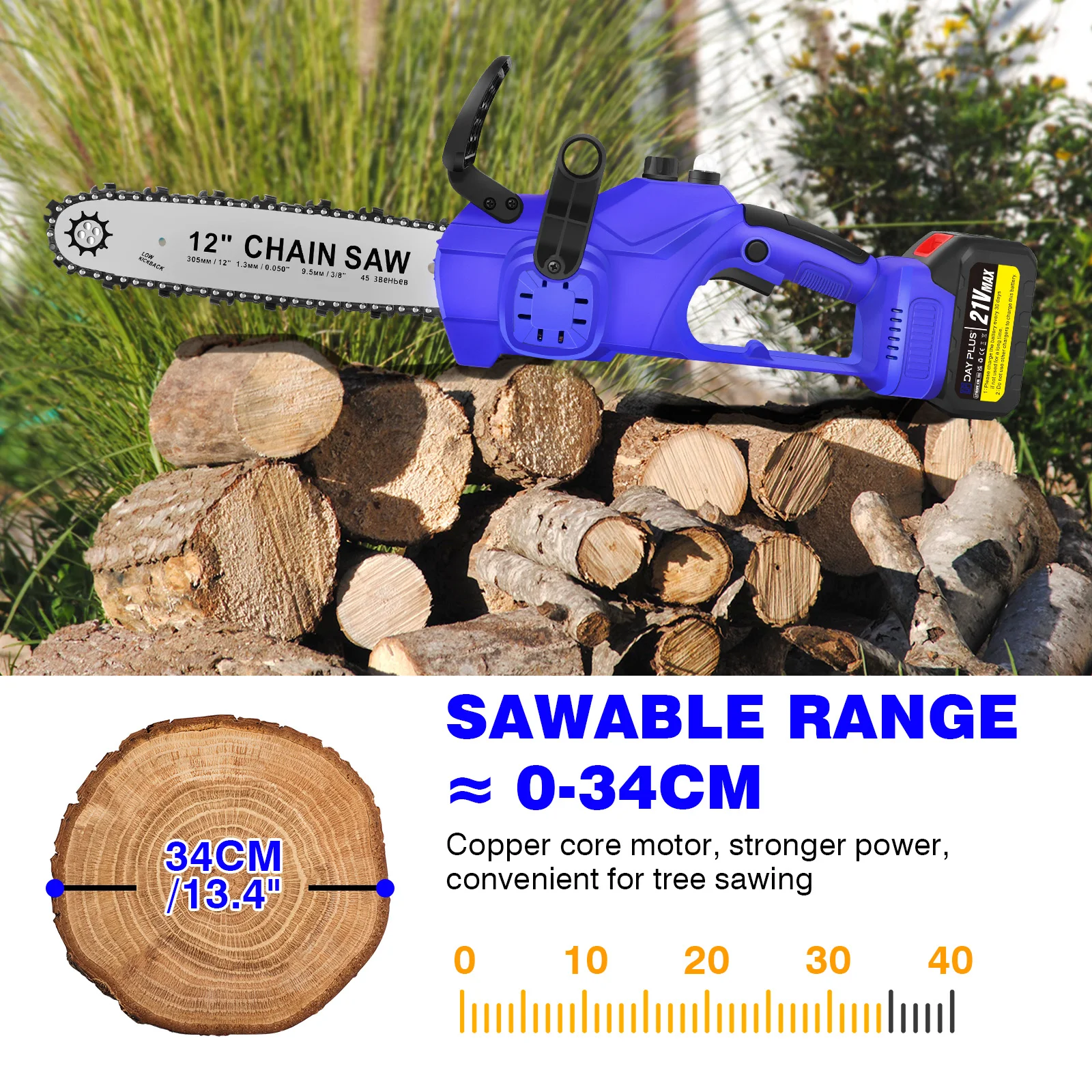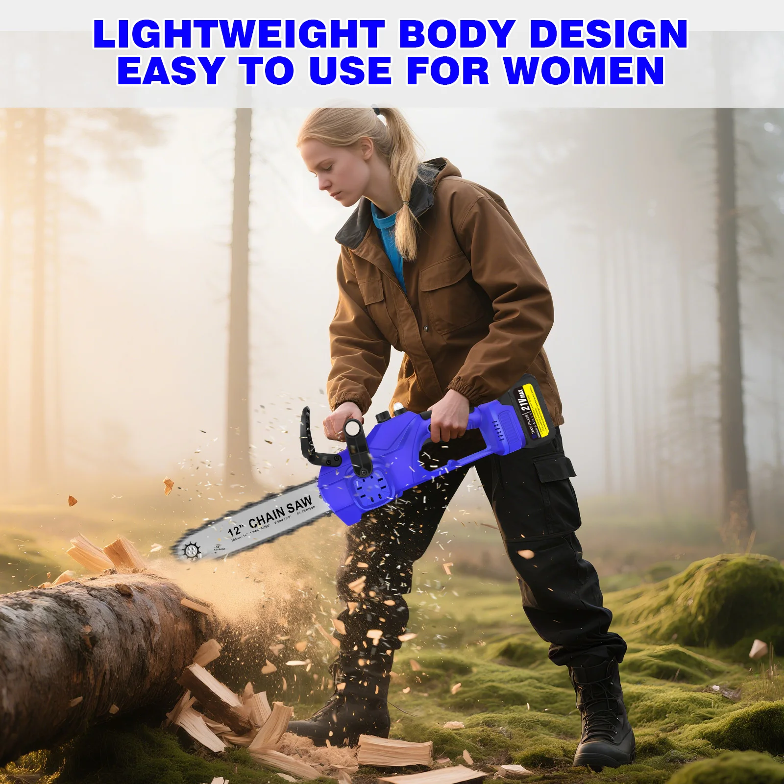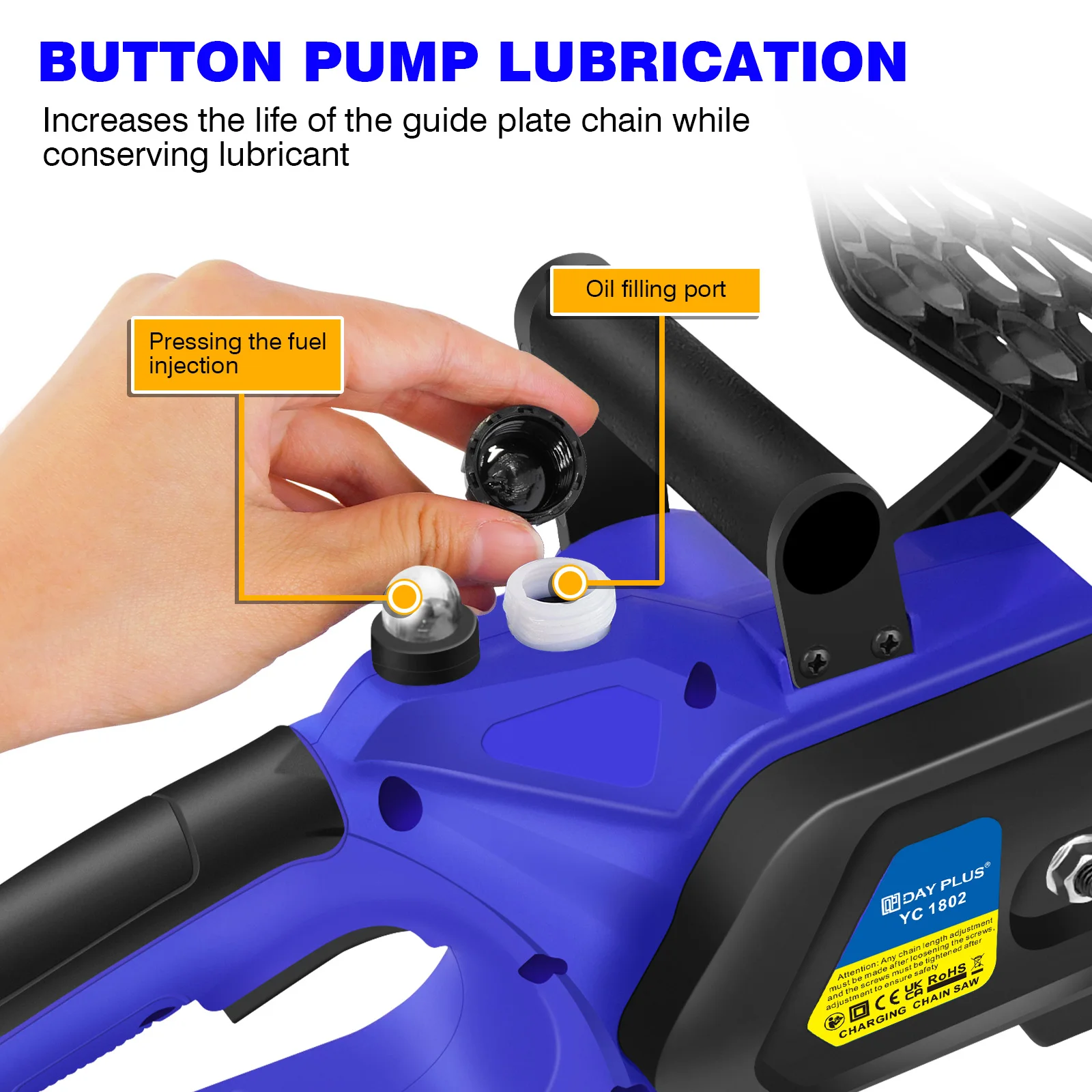 Our electric chainsaw employs a high-power brushless motor design for rapid timber cutting. It features a robust guard to ensure safe cutting and prevent flying debris or chain contact with hands.