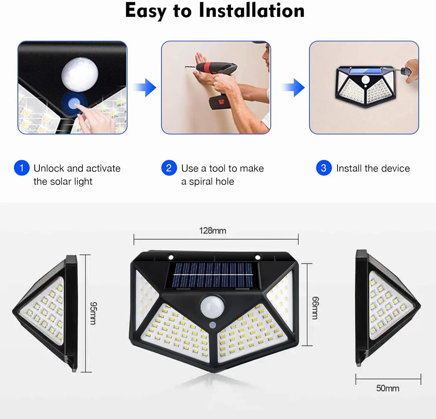 – The solar light should be installed in places where sufficient sunshine is available.