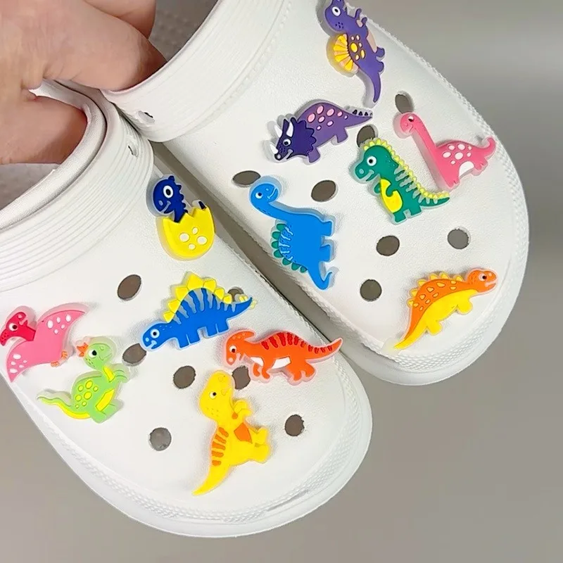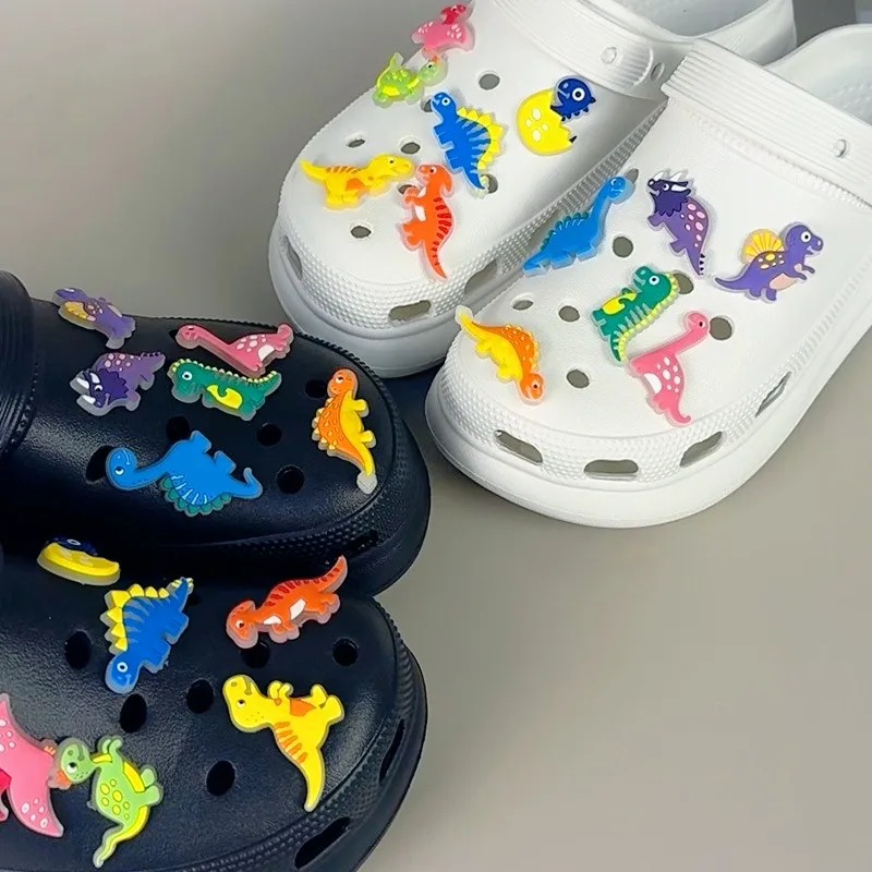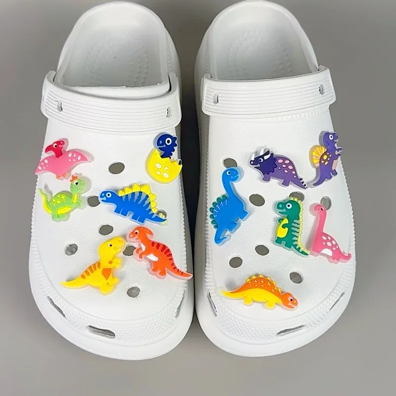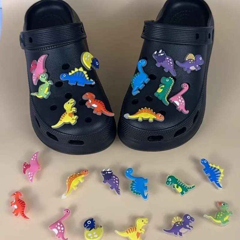 12PCS Luminous Shoe Charms Set Accessories Hole Shoe Buckle Cute Dinosaur DIY Shoes Decorations Kids Party Boy Girls Gift
