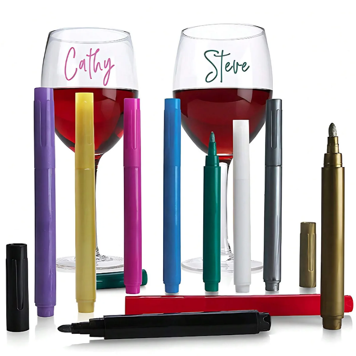 Introducing our brand-new 12pcs Wine Glass Markers – the perfect addition to your wine-tasting or party-hosting arsenal! These erasable fine tip markers are designed specifically for marking wine bottles, ceramics, and glasses, making it easy to identify your favorite vintages or track who's had which glass.