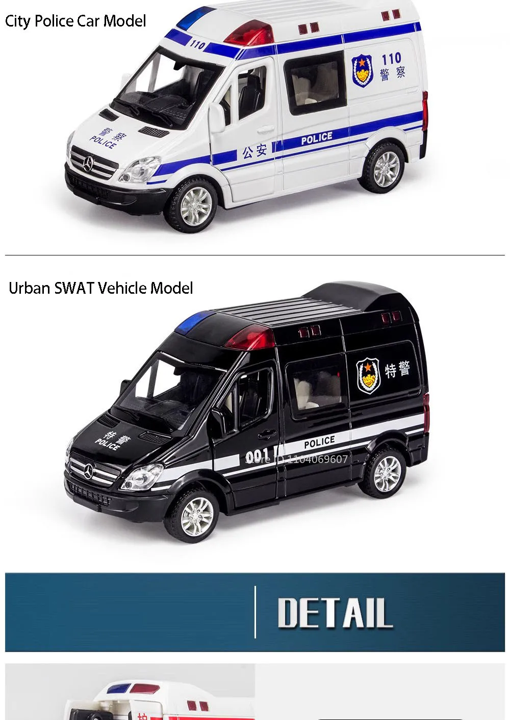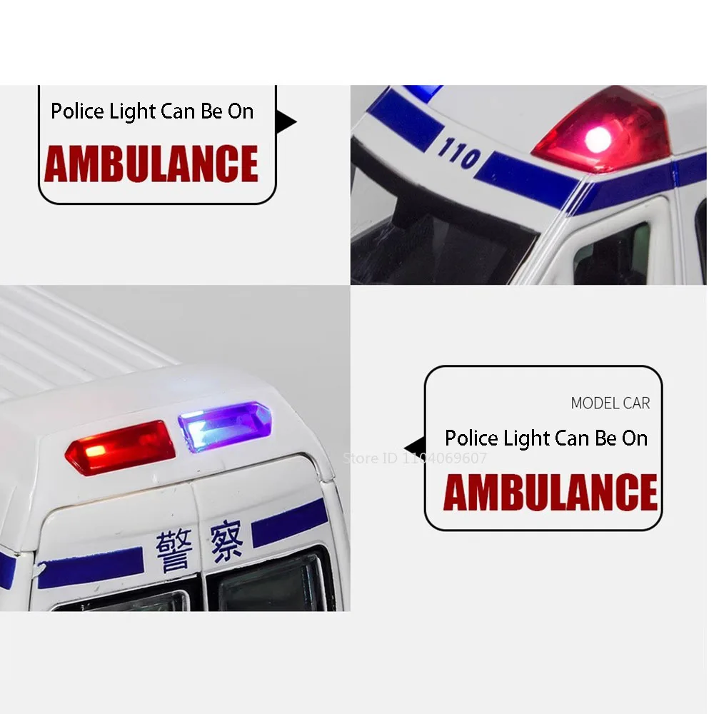 1:36 Scale City Ambulance Model Toy Cars Alloy Diecast SWAT Car Pull Back Sound Light Doors Opened Police Vehicle for Boys Gifts