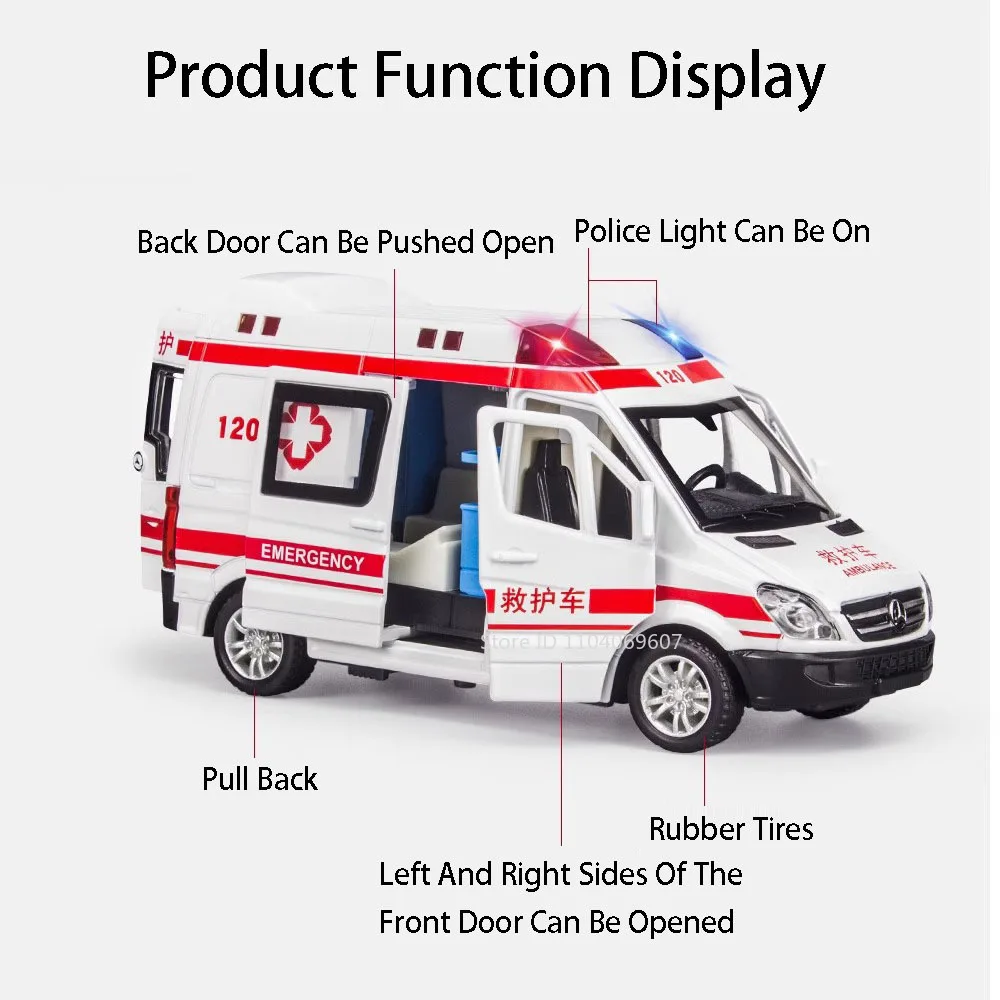 1.Product Name: 1:36 Scale City Ambulance Model Toy Cars