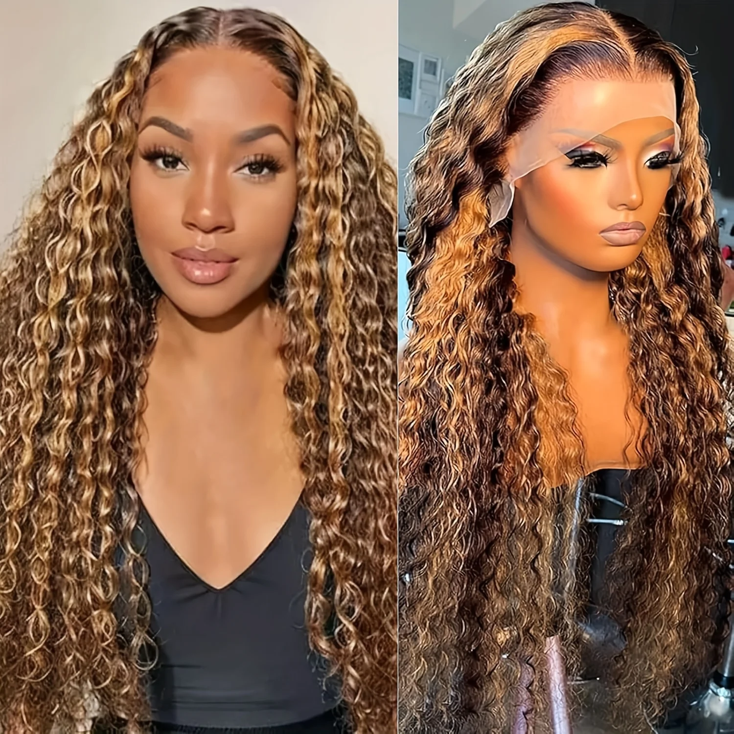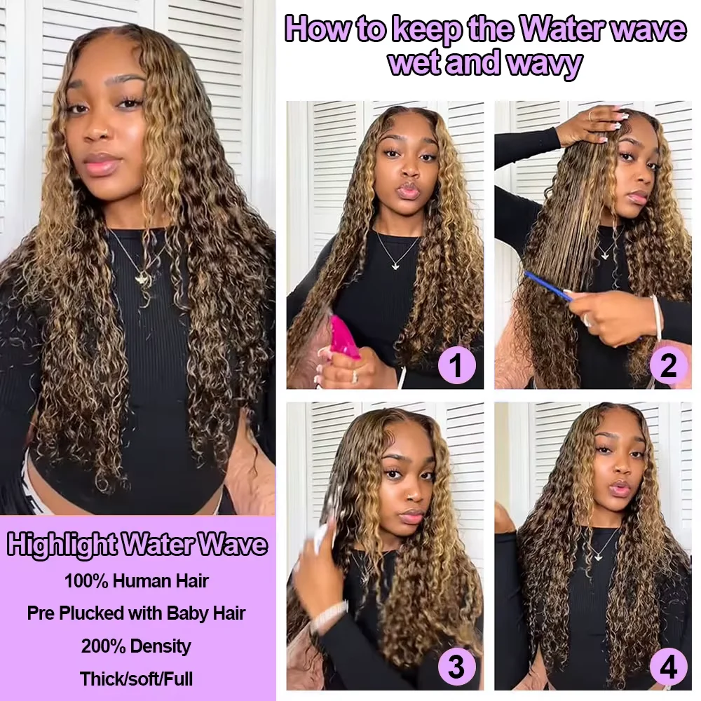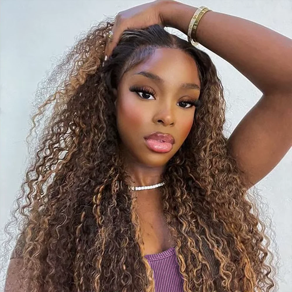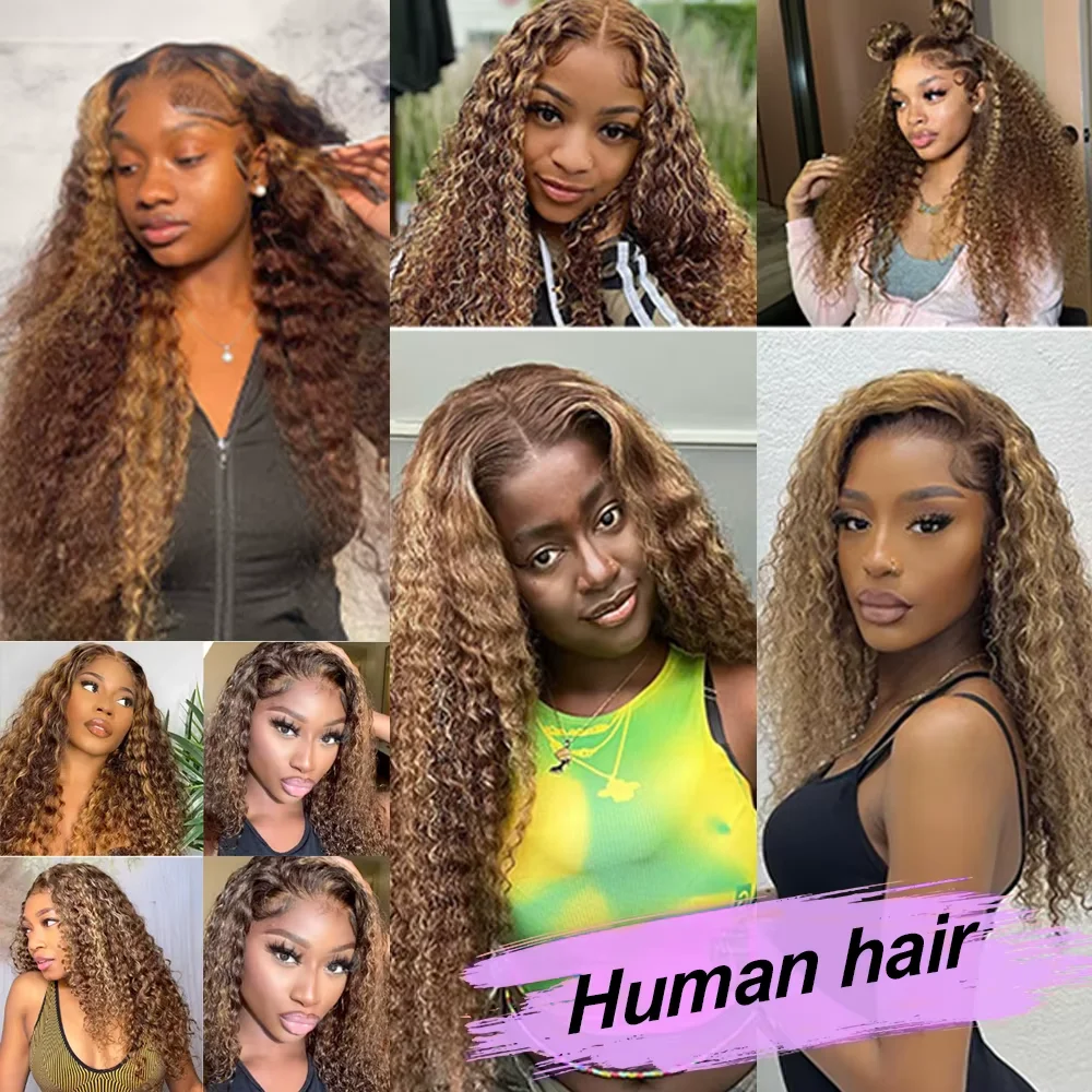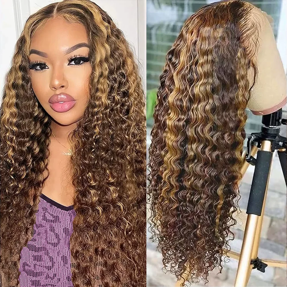 13×6 Deep Wave Lace Front Wigs 36 Inch Human Hair Highlight Ombre Pre Plucked 4/27 Colored 13×4 Water Wave Curly Lace Front Wigs