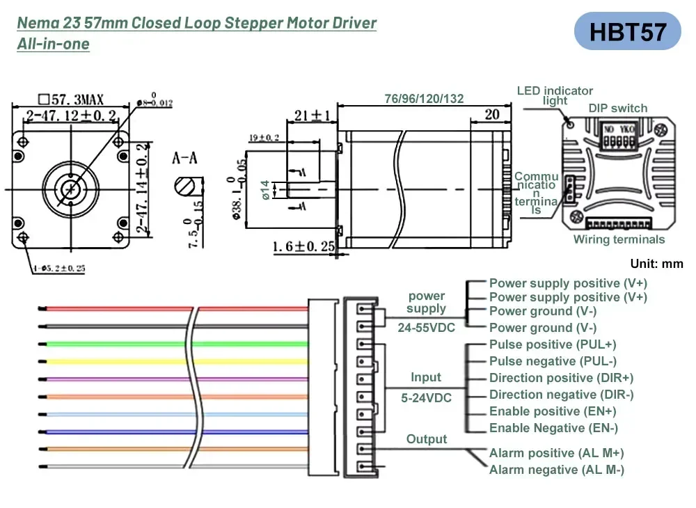 1* 1.5Nm Nema 23 57mm Closed-loop Stepper Motor Driver All-in-one