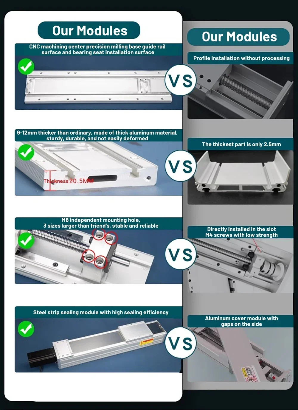 Ball screw | SFU2005 | SFU2010 | SFU2020 | Adapted motor | 60/80mm Servo | Nema 23 57mm/ | ||||||