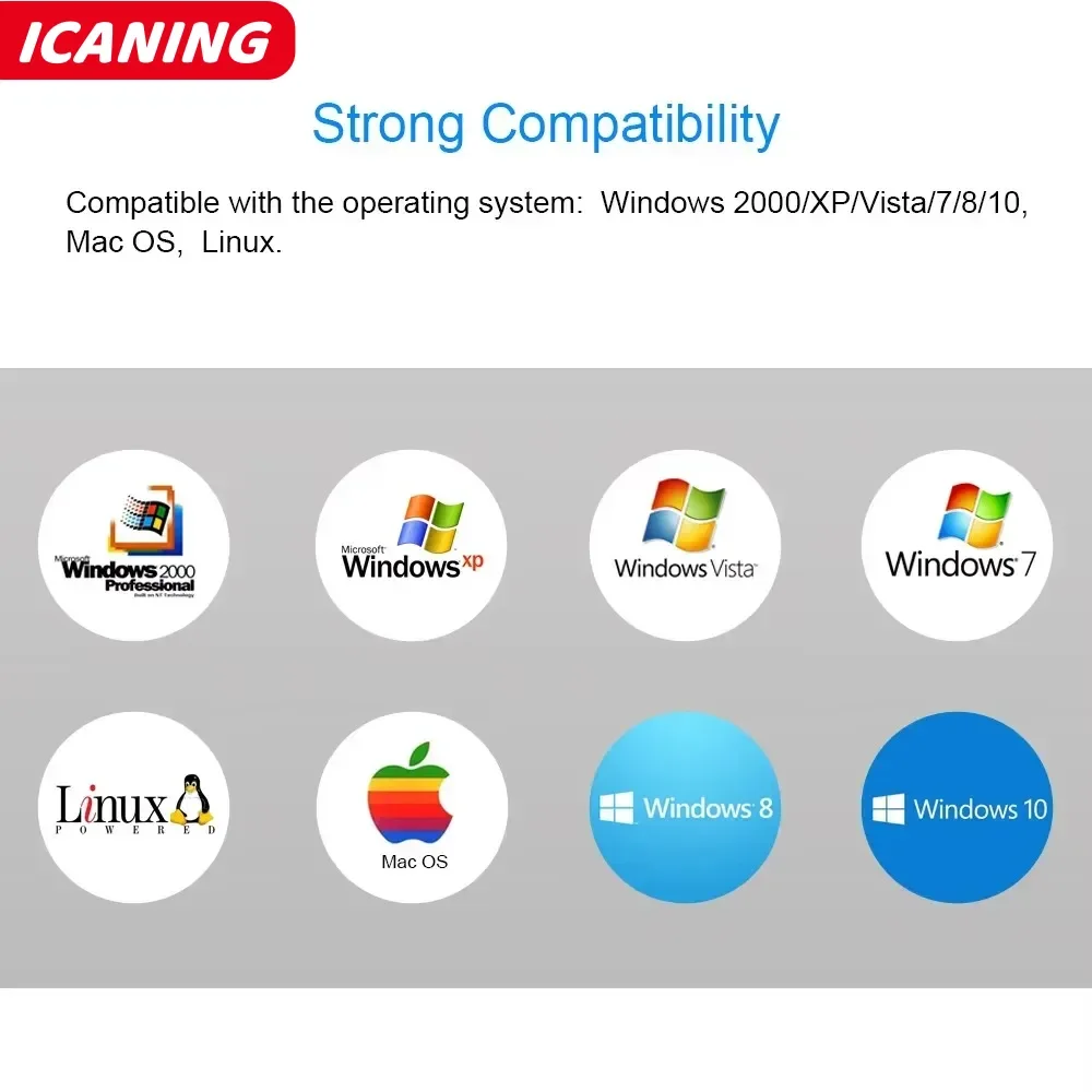 Supports WIN2K, XP, VISTA, WIN7, MAC, LINUX operating system Â