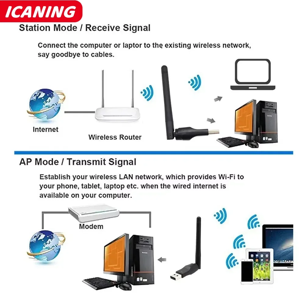Provides two work modes: Infrastructure and Ad-Hoc Â