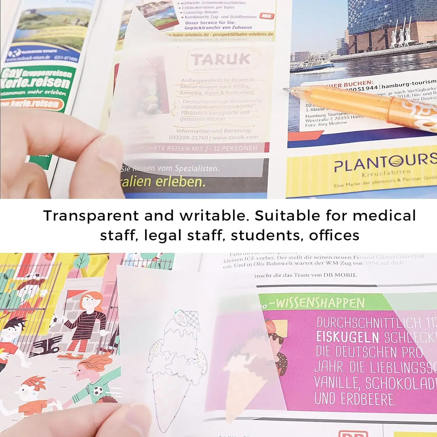 4. These see-through sticky notes can be applied to oil-based pens, gel pens, ballpoint pens, pencils, and colored leads. It can be used for copying pictures, organizing notes, practicing wrong questions, and leaving messages.