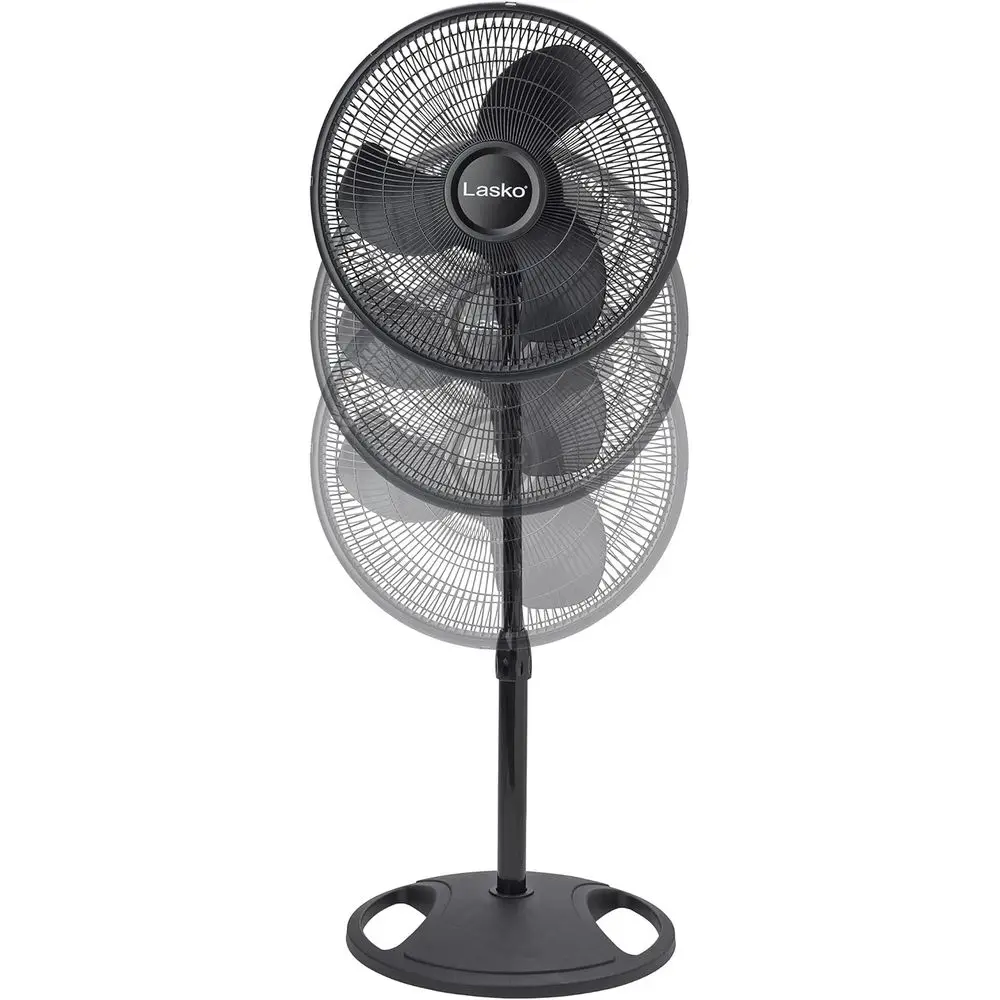 Description: This 16-inch black oscillating pedestal fan is an excellent choice for both home and office settings. It boasts 3 quiet speeds controlled by an easy-grip rotary dial. The height is adjustable up to 47 with a wide-range 90-degree oscillation for optimal air circulation. Assembly is hassle-free with no tools required.