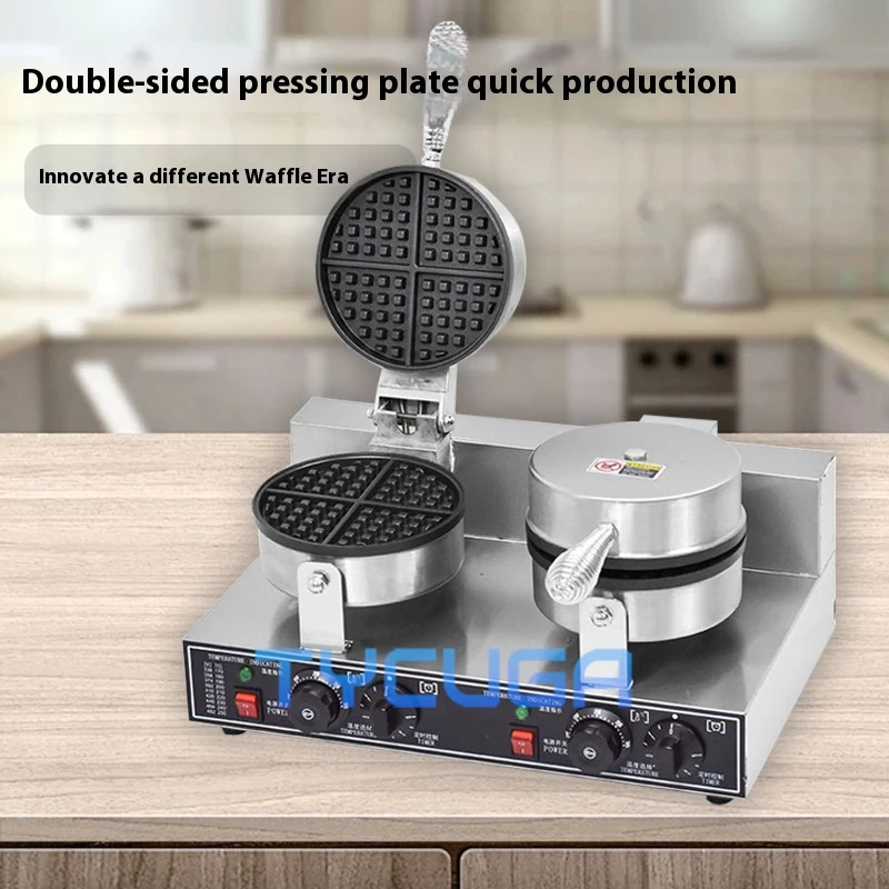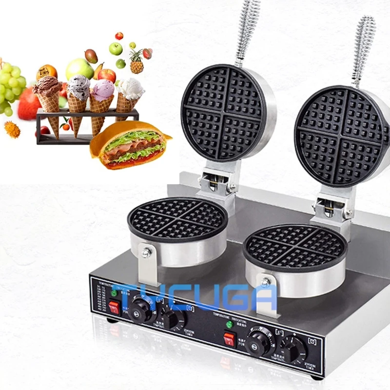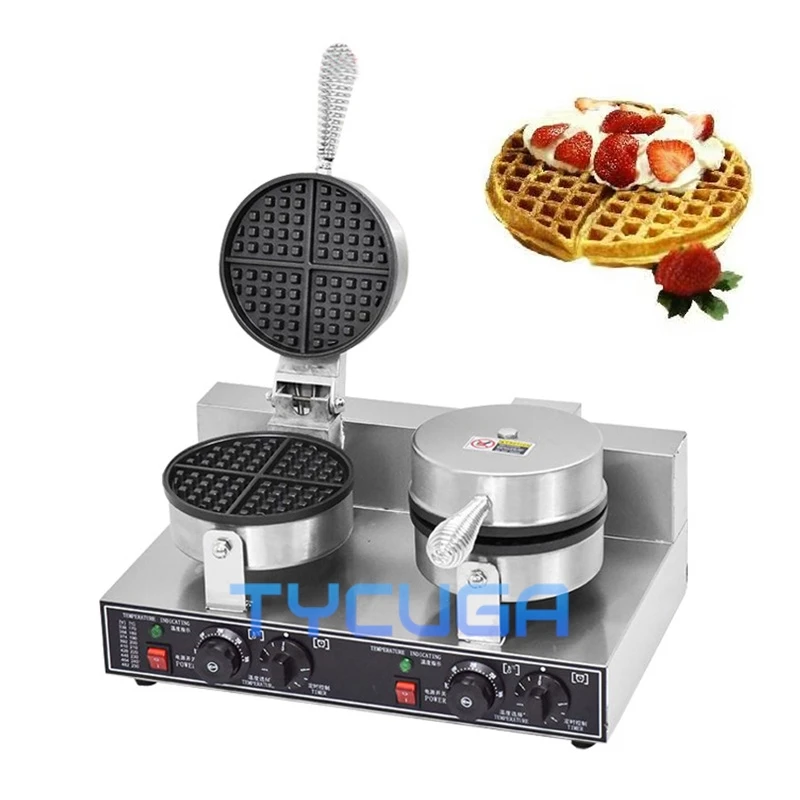 185mm Nonstick Plate Double Head Electric Waffle Maker Cake Baking Machine Round Gofreras Kitchen Home Commercial Appliance Use