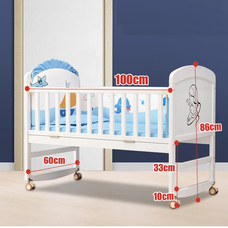 100cm Wood Baby Crib, Newborn Cot can Joint With Adult Bed
