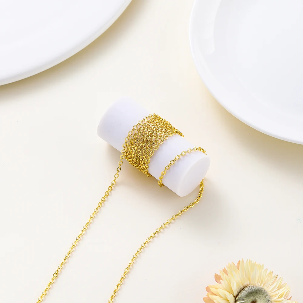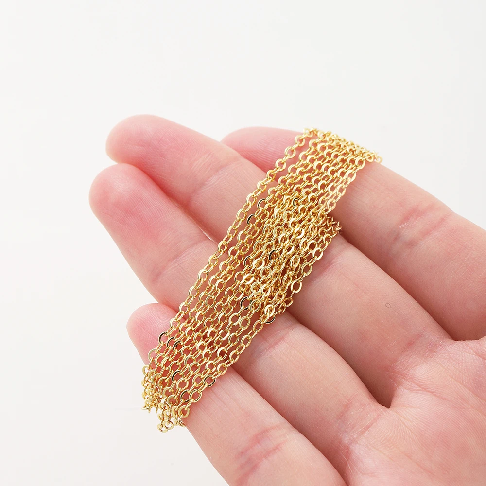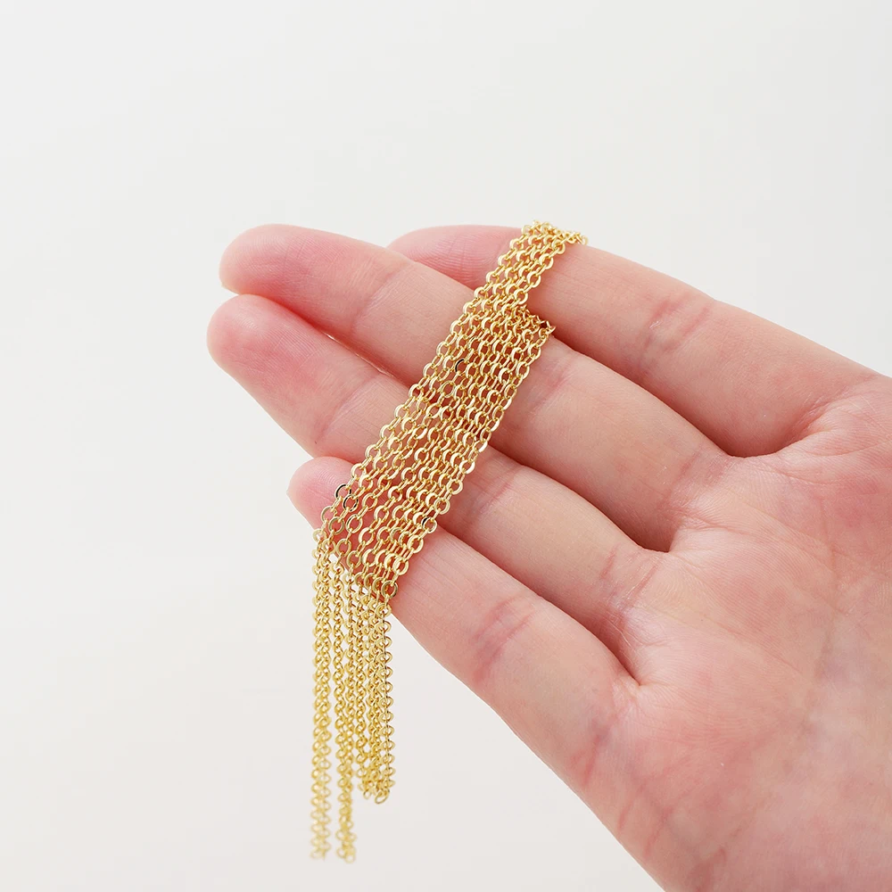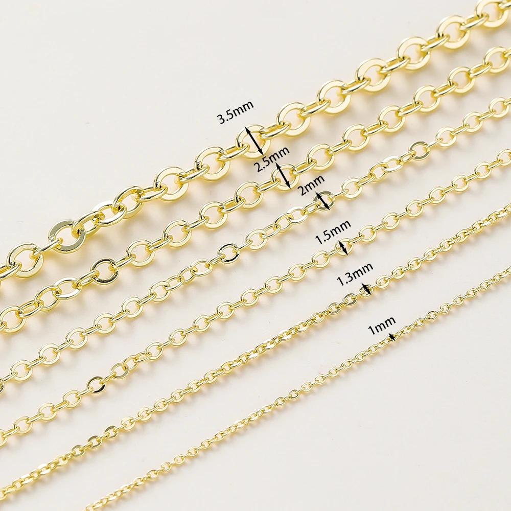 1Meter 1.0-3.5mm 14K/18K Gold Color Plated Brass Flat Cross Chains for DIY Necklace Chains Jewelry Making Findings Supplies
